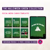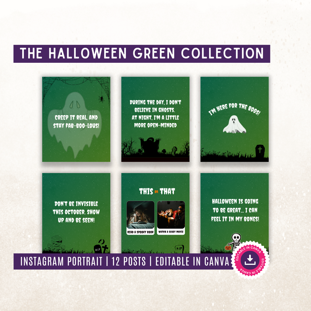 Bring some ghoulish vibes to your social media feed with these 12 fully editable Instagram portrait templates in a green background! 🎃