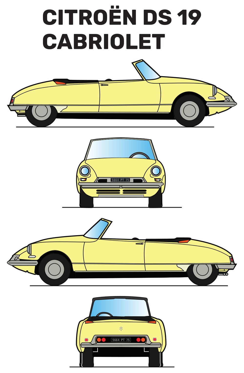 Citroen DS 19 Cabriolet Car Blueprint PDF SVG Vector Drawing.