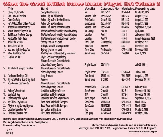 Following the positive response to the first release, we issued a second helping of hot recordings by the Great British Dance Bands.
