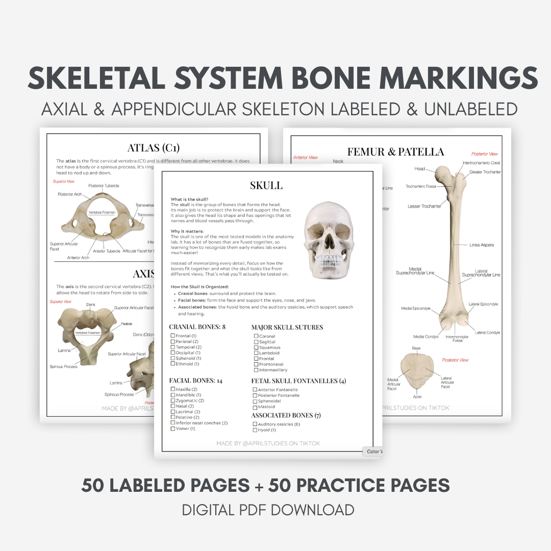 Study for Skeletal System lab practicals using REAL classroom bone models!