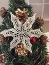 The size of the snowflake depends on the weight of thread or yarn used. Make them small for packages or large to attach to potholders for a festive kitchen.