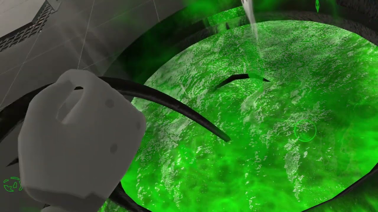 Cauldron with bubbles in the pot, bubbly sound, smoke particles, Bubble particles, Skulls and Souls.