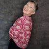 This enchanting shawl looks like a warm, passionate rose with its thousand of petals in a vibrant red colour.