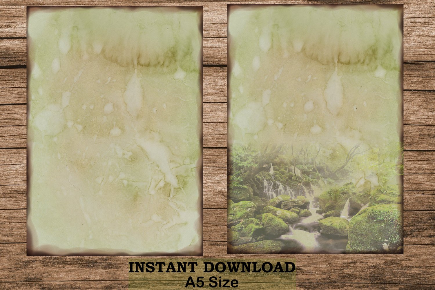 Printable Mystic Forest Paper, 2 Sheets Instant Download, Scrapbooking, Writing Paper, Ephemera, Vintage Stationery, Antique