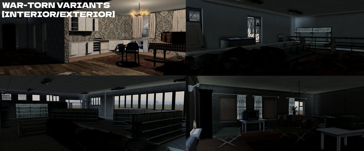 - 20 TOTAL custom made buildings (37 total if counting the War torn and Without furniture variants)