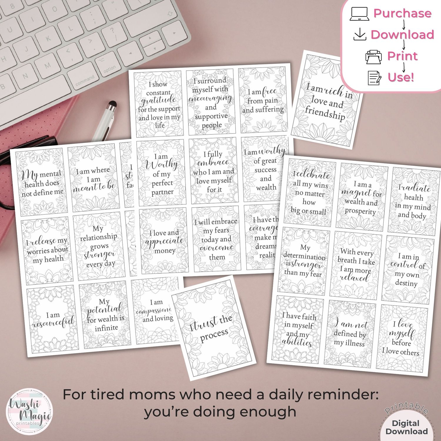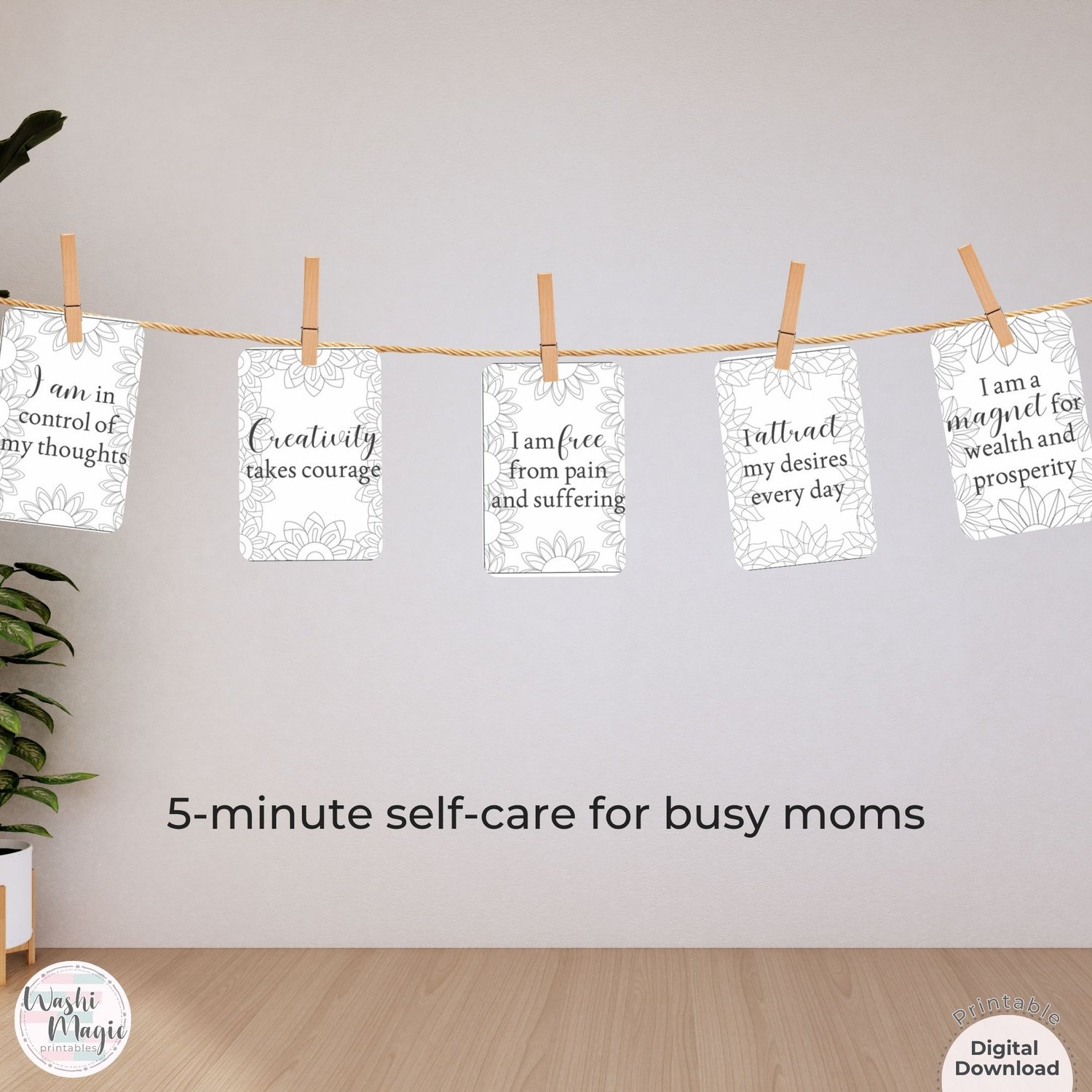 Floral Coloring Affirmation Cards for Moms, Self Care Gift