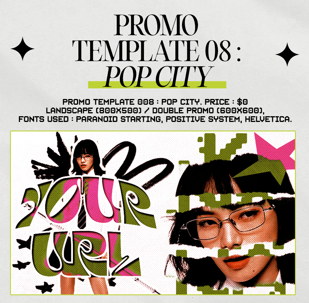 FONTS USED : PARANOID STARTING, POSITIVE SYSTEM, HELVETICA (included)