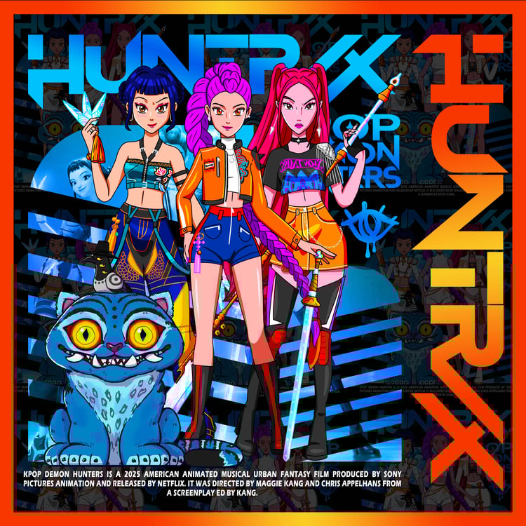 Step into the futuristic world of Huntrix: KPOP Demon Hunters, where fashion, anime, and urban fantasy collide! This exclusive artwork is inspired by vibrant K-pop aesthetics and bold anime vibes, making it perfect for fans, creators, and merchandising designers who want something unique and eye-catching.