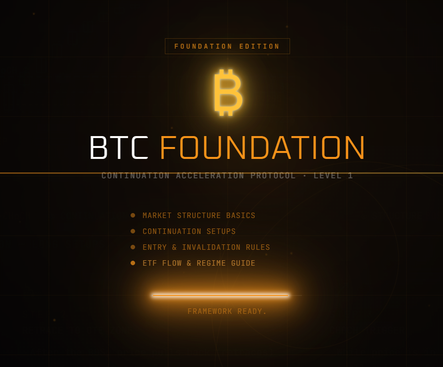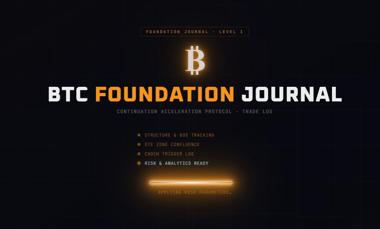 What's included: BTC Foundation Protocol — 10-module CAP system for BTC/USDT perpetuals. BTC Foundation Journal — 10-focal-point session log. Gold Foundation Protocol — 10-module CAP system for XAUUSD perpetuals. Gold Foundation Journal — 10-focal-point session log. All 4 Foundation-tier products for BTC and Gold.