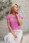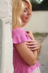 Woollahra Tee is worked in one piece, bottom-up. It starts with the hem and it is worked in rounds to the underarm where the work is divided into back and front parts. Back and front are worked in rows. After neckline and shoulder shaping, the fronts and the back are joined on the shoulders with Mattress Stitch to provide stabilization and most accurate pattern match. Sleeve stitches are picked up around the armholes and shaped using short rows. The number of picked up stitches for the sleeves is bigger than usual to obtain a slight frill. The sleeves are made fully with Twisted Rib stitch. The neckline is finished with 3 rows of Stockinette stitch. Most of the instructions are represented with charts to minimize their length and make them intuitive.