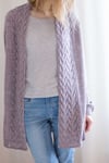 The cardigan is designed to be worn with approximately 2” / 5 cm of positive ease which is already built into each size. Shown in size M in longer version.