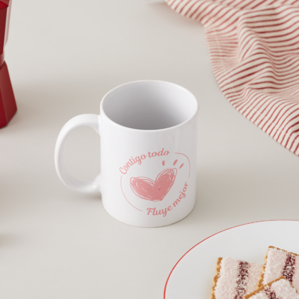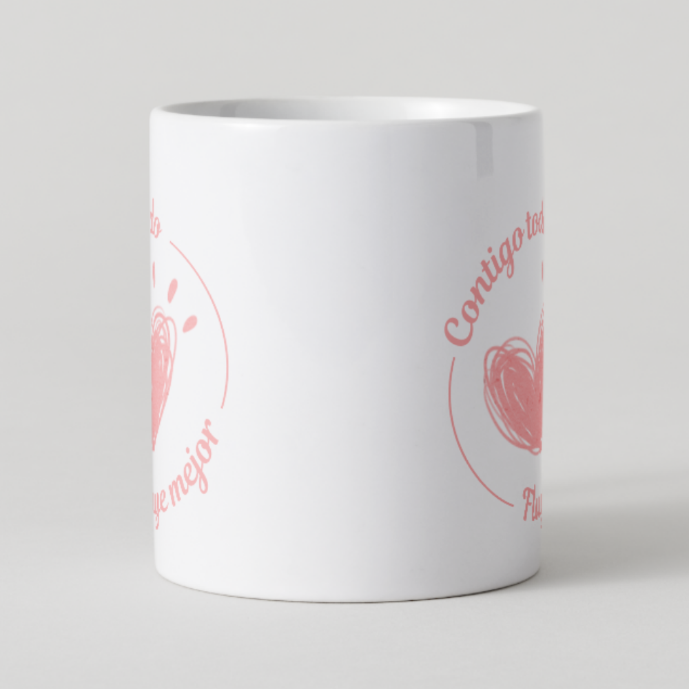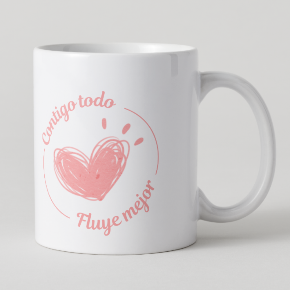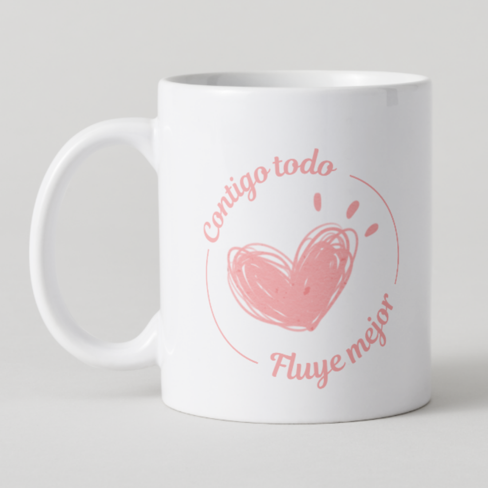 Taza “Contigo todo fluye mejor” – Amor en estado líquido