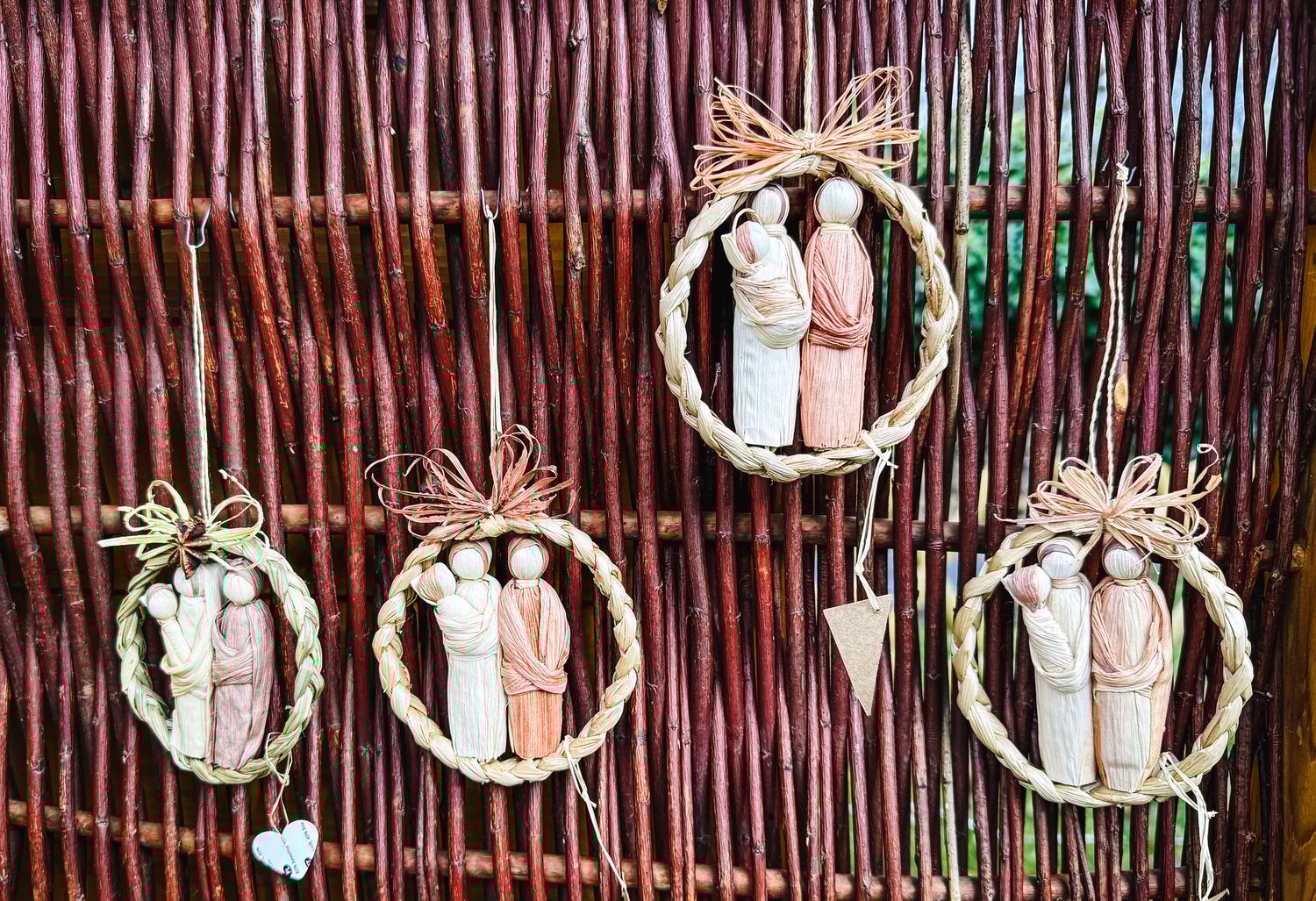 nativity, wreath, handmade, Christmas, decoration, corn, husk, figures, rustic, traditional, craft, folk, art, holiday, natural, straw, braided, ornament, wood, background, festive, minimal, simple, creative, culture, spiritual, religious, seasonal, DIY, decor, celebration, hanging, symbolic, eco, rural, scene, handcrafted