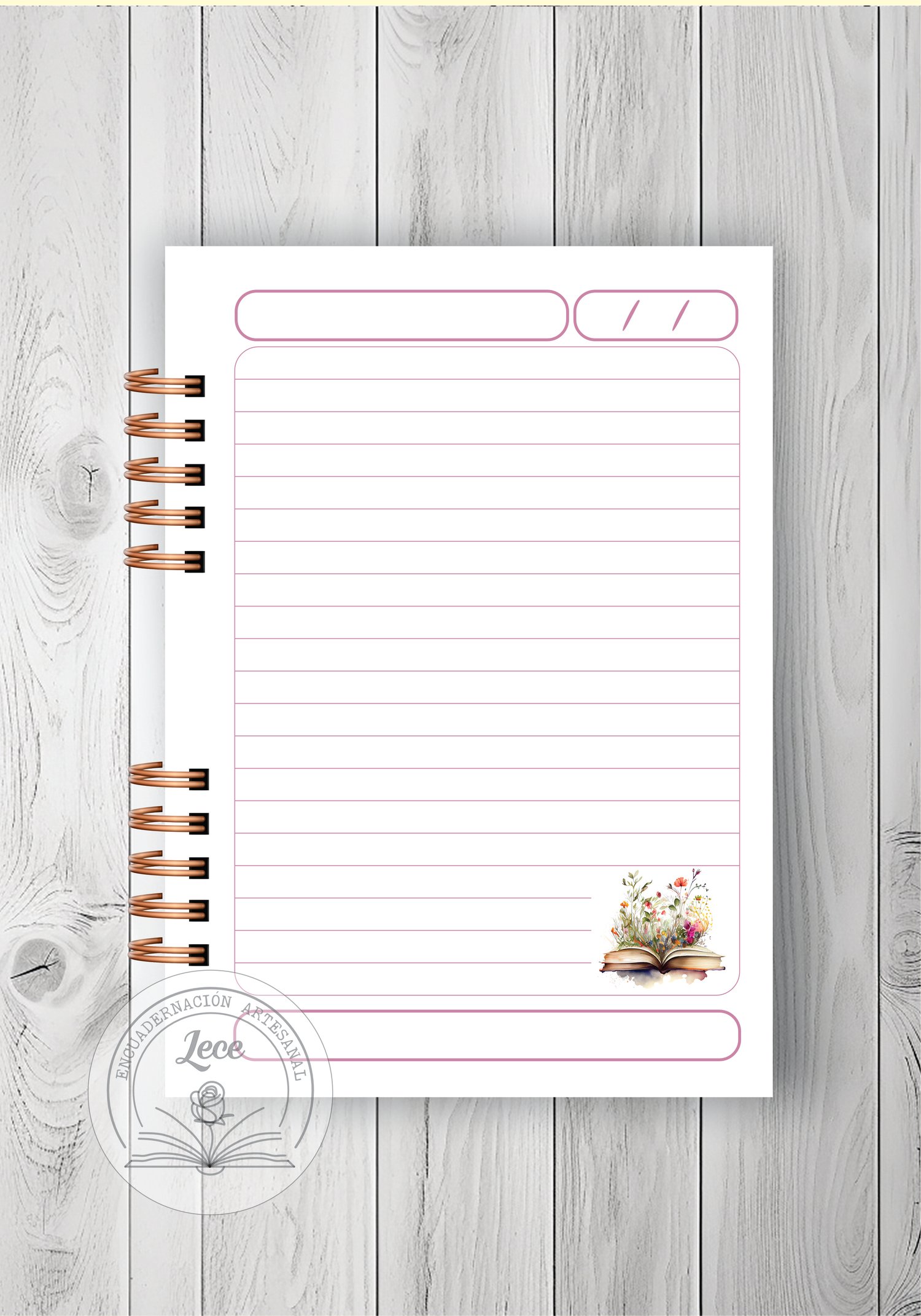 - 1 modelo de interior de 100 hojas rayadas con diseño para imprimir en tamaño A5 para anillado.