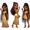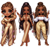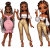 Each illustration showcases a confident caramel African American girl with long, flowing braids styled in different fashionable hairstyles, adorned with gold and pink accessories. Dressed in chic and luxurious outfits, these stylish girls exude confidence and radiate charm, making them perfect for any design project that needs a bold and beautiful statement.