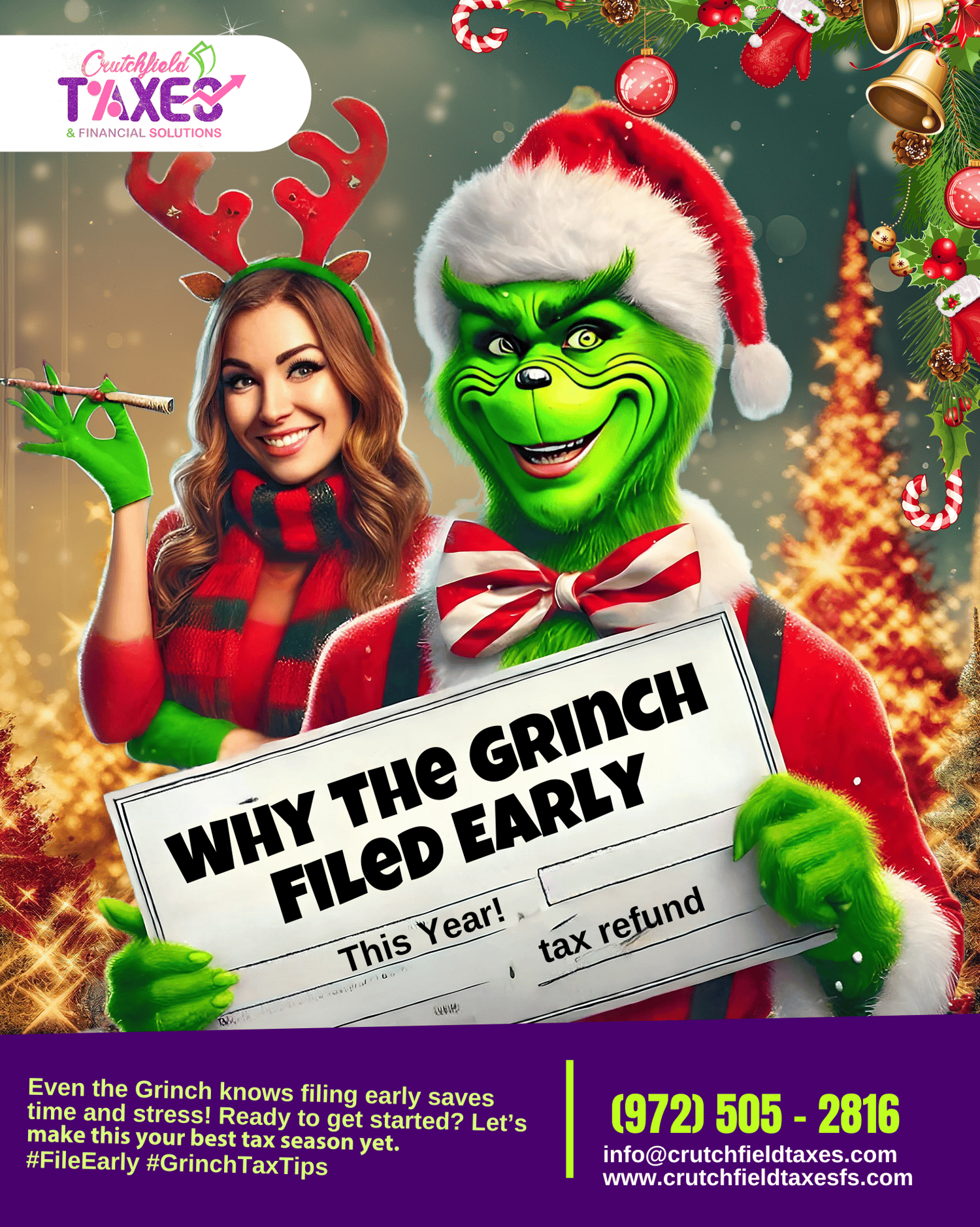 Make tax season fun with the ‘Why the Grinch Filed Early This Year’ Flyer Template – a ready-to-use digital design to engage clients with humor and festive creativity!