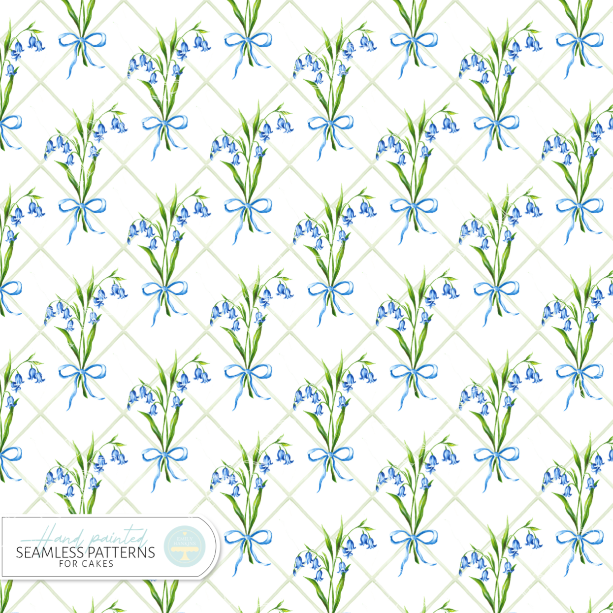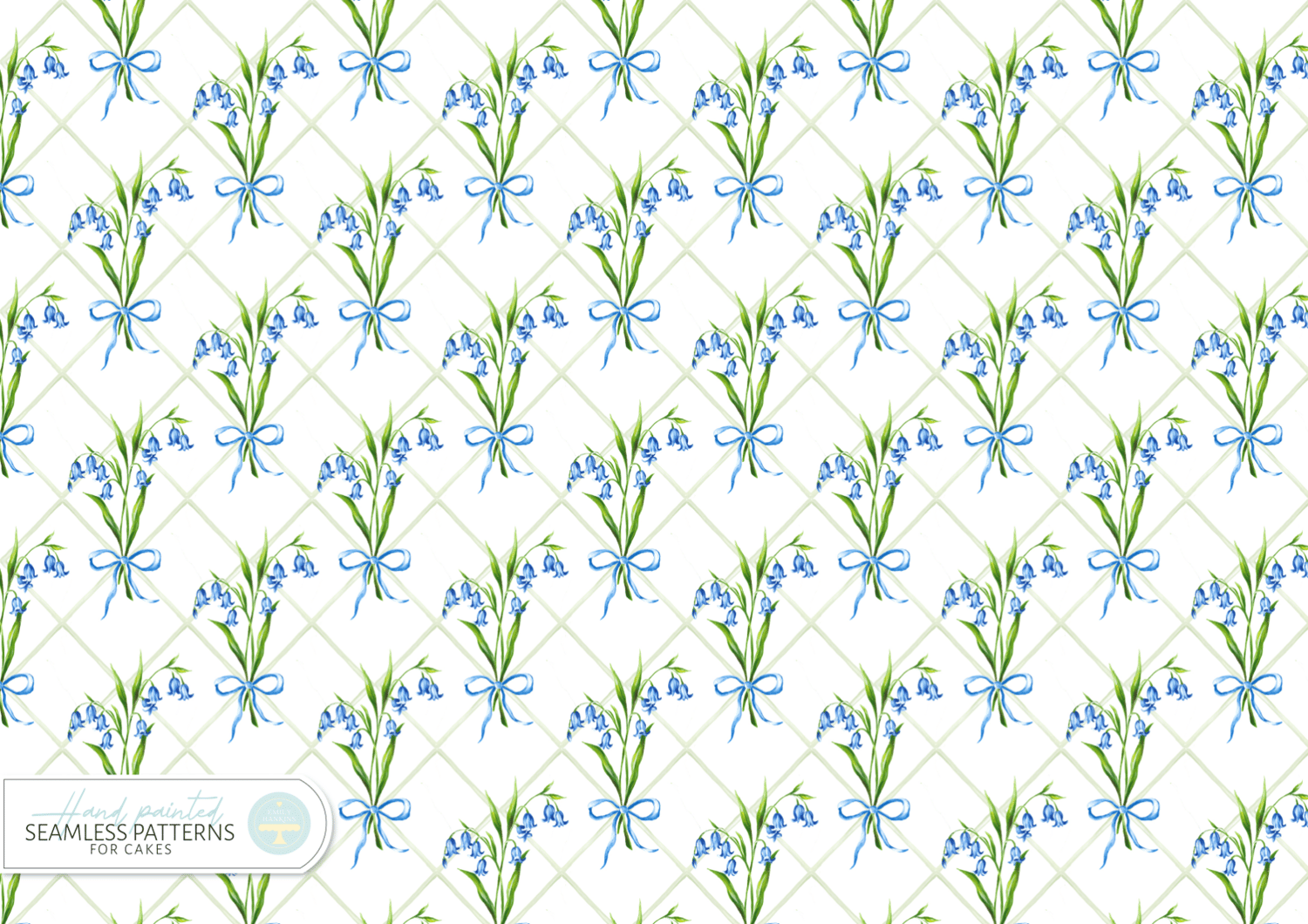 BLUEBELL TRELLIS - GREEN is a seamless pattern design specifically created for use on cakes - perfect for spring birthdays, Easter goodies, Mothers Day and more!