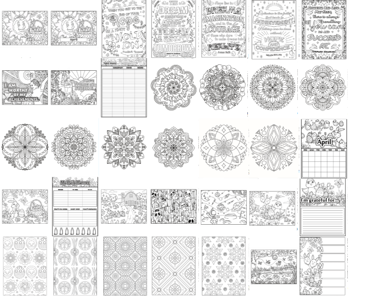 This beautifully designed 35-page printable coloring & planner bundle combines relaxing coloring pages, uplifting affirmations, and practical planning tools — all in one.
