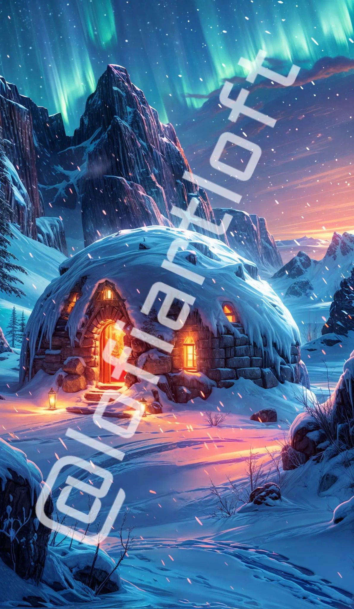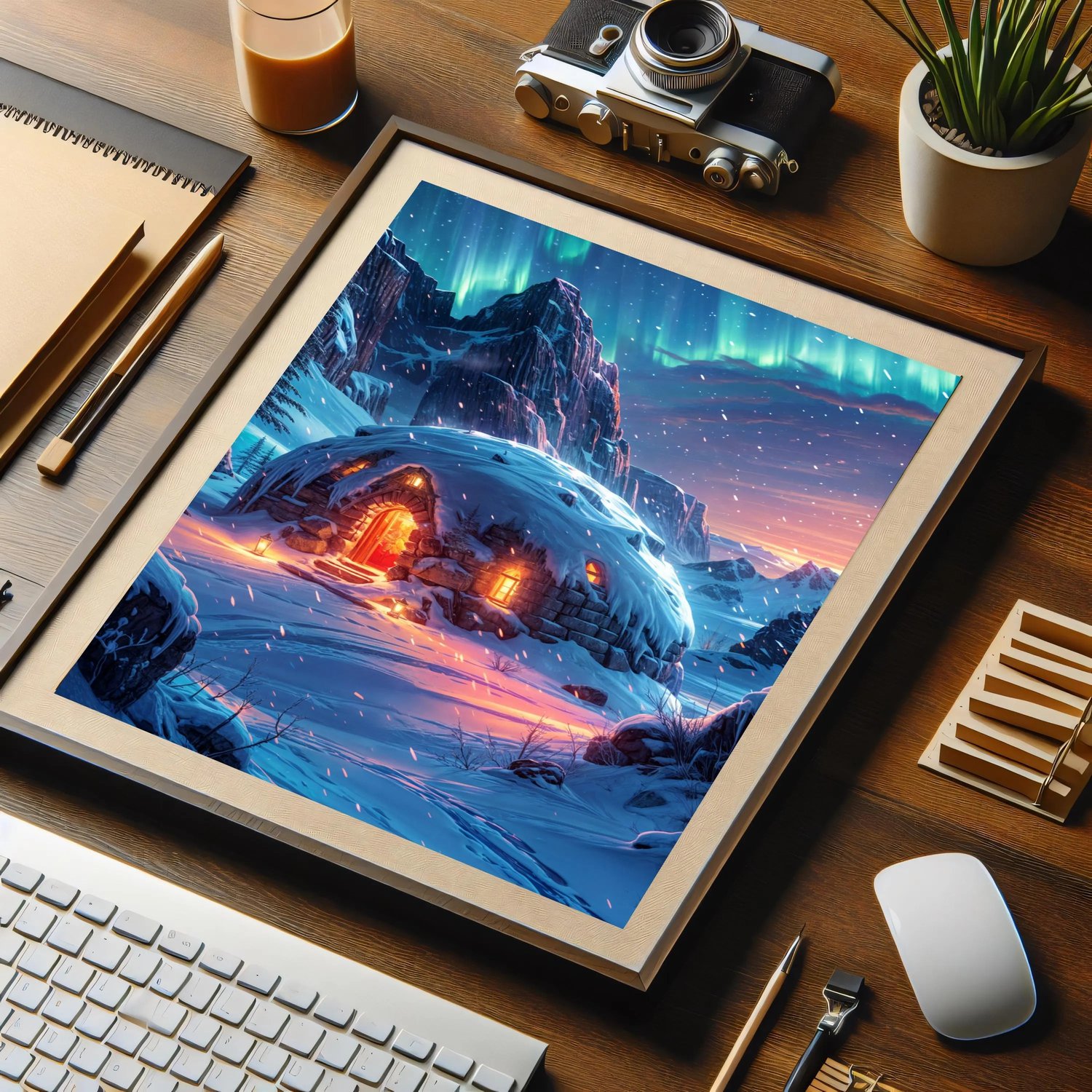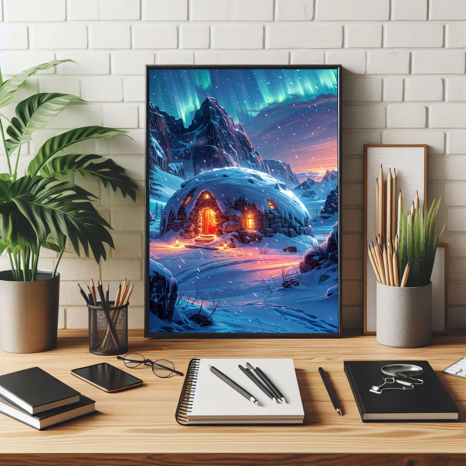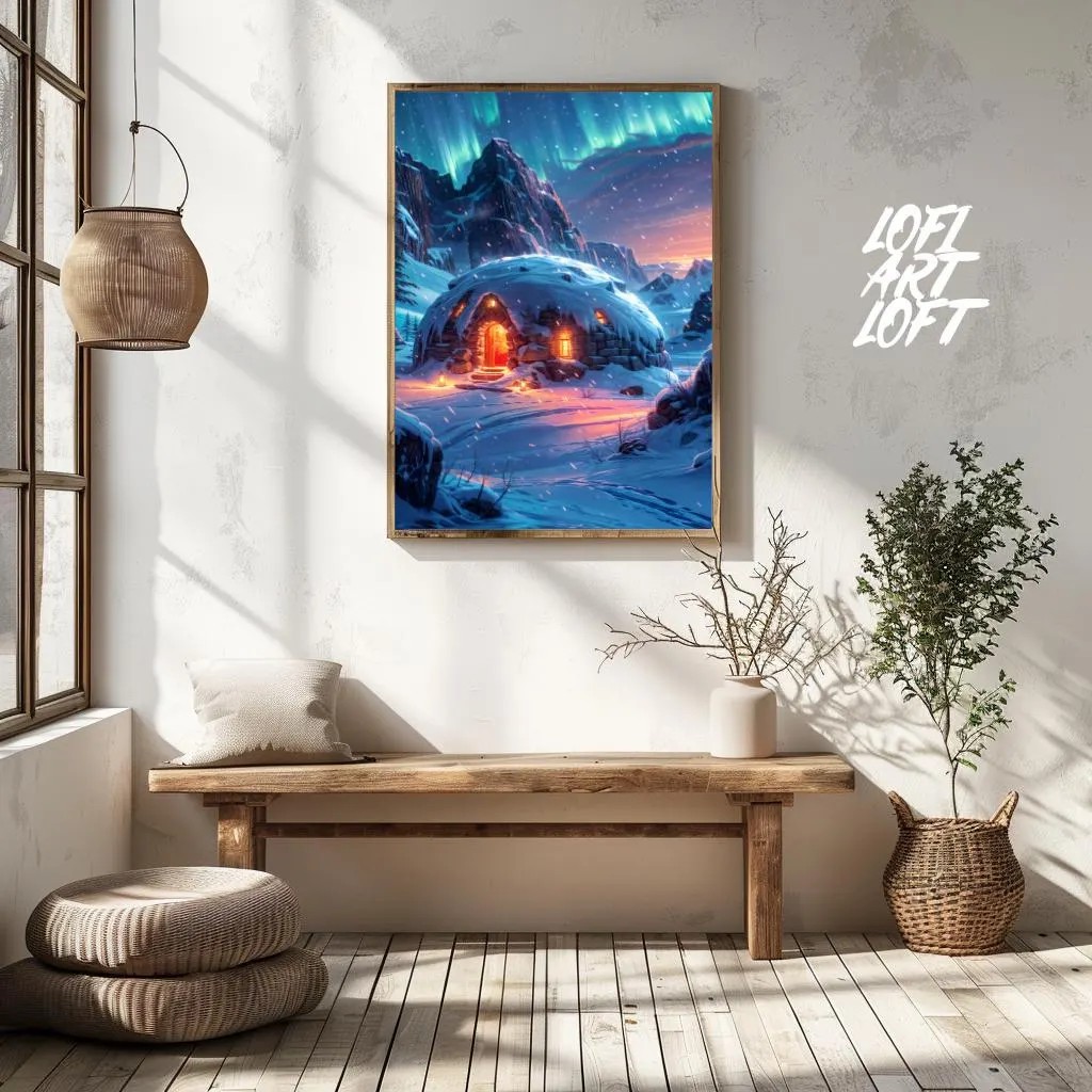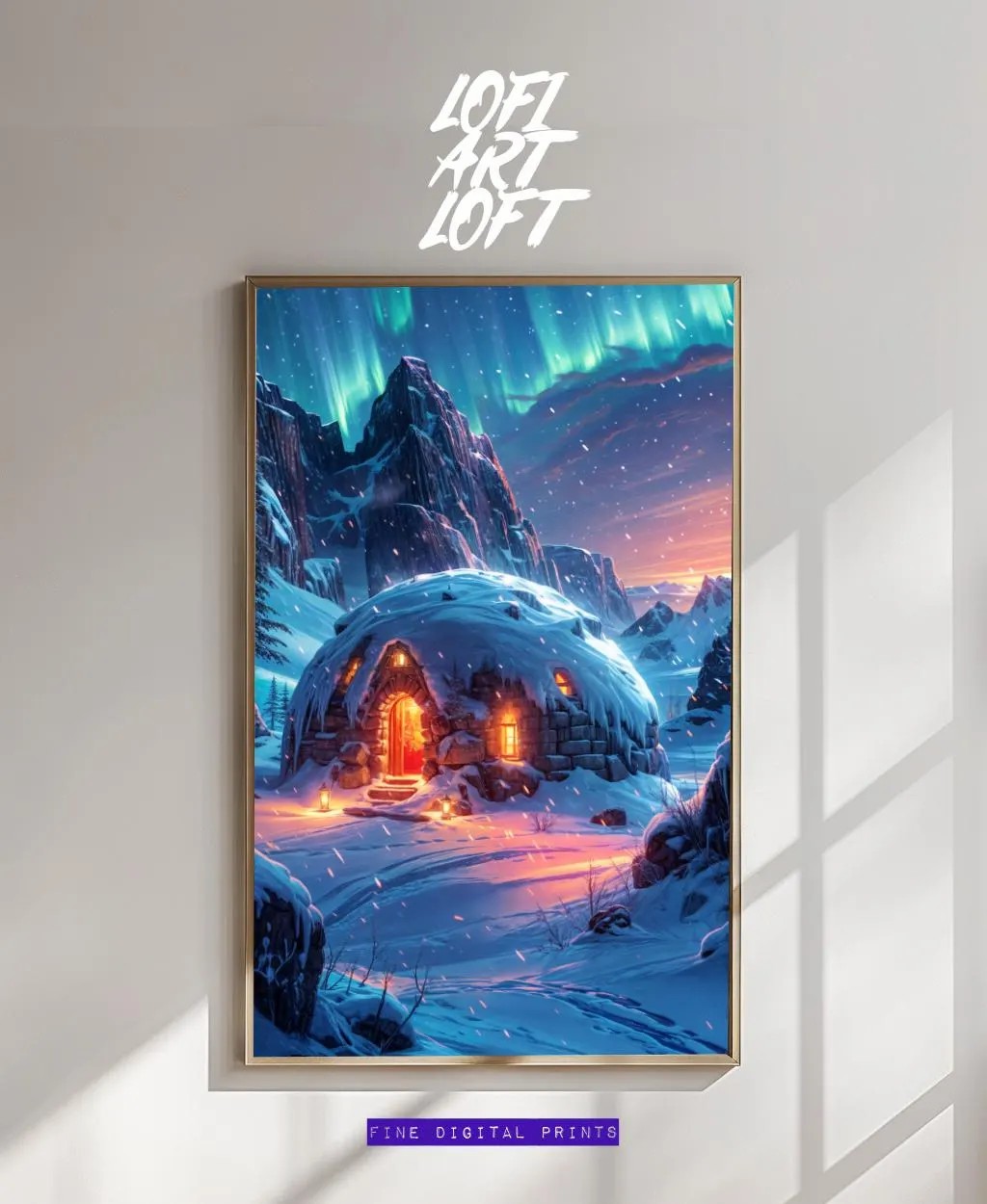 Igloo Aurora Glow - UHQ Digital Lofi Anime Art Print | #18