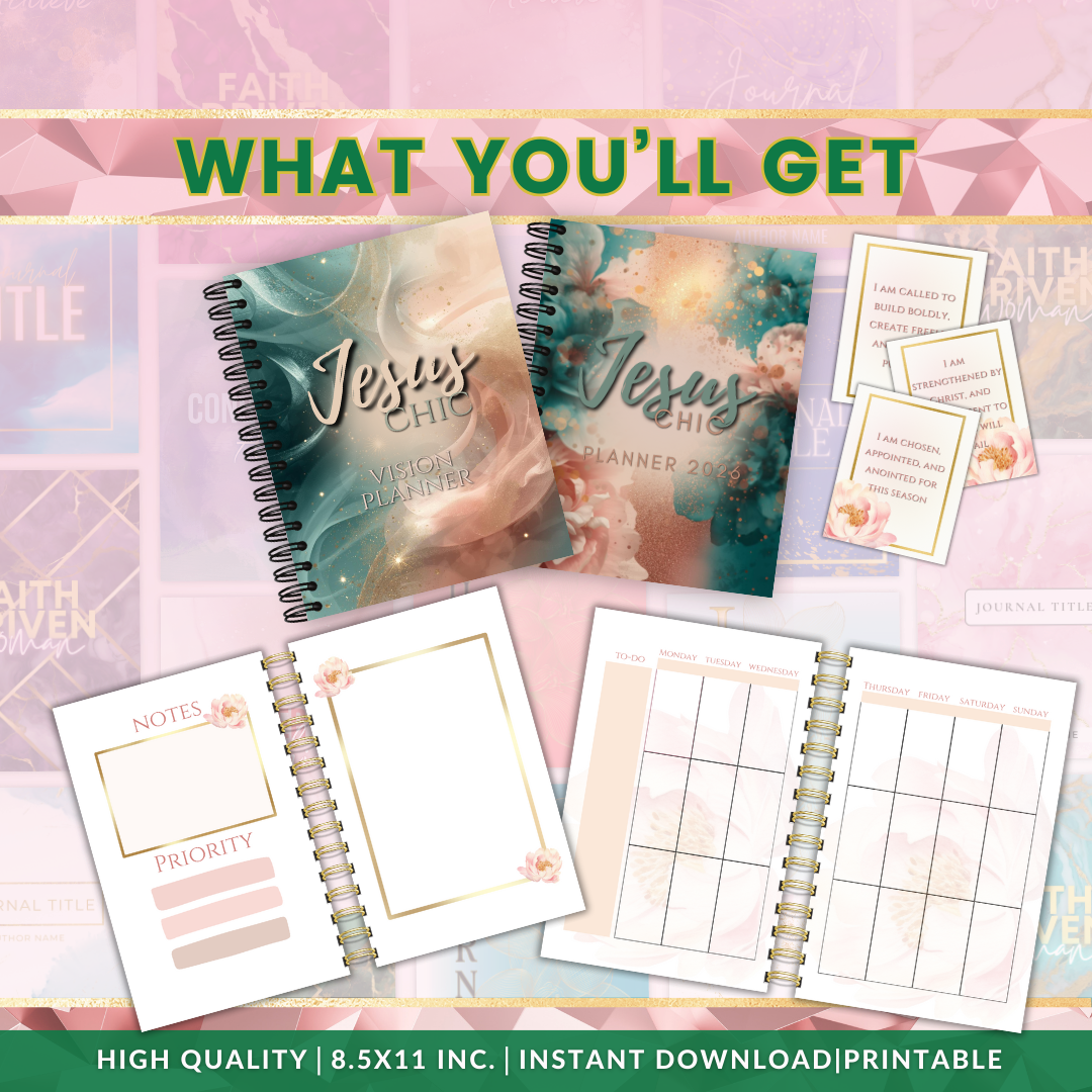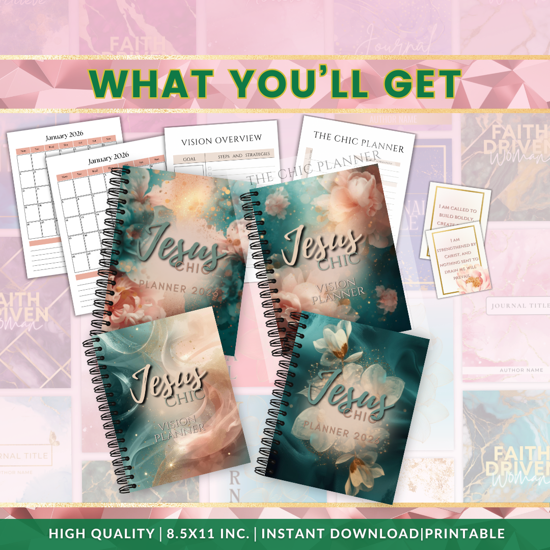 Inside, you’ll receive the full Jesus Chick™ Undated Vision Planner, the 2026 Dated Planner, and a coordinated set of Scripture-based digital affirmation cards that speak identity, purpose, peace, and divine confidence.