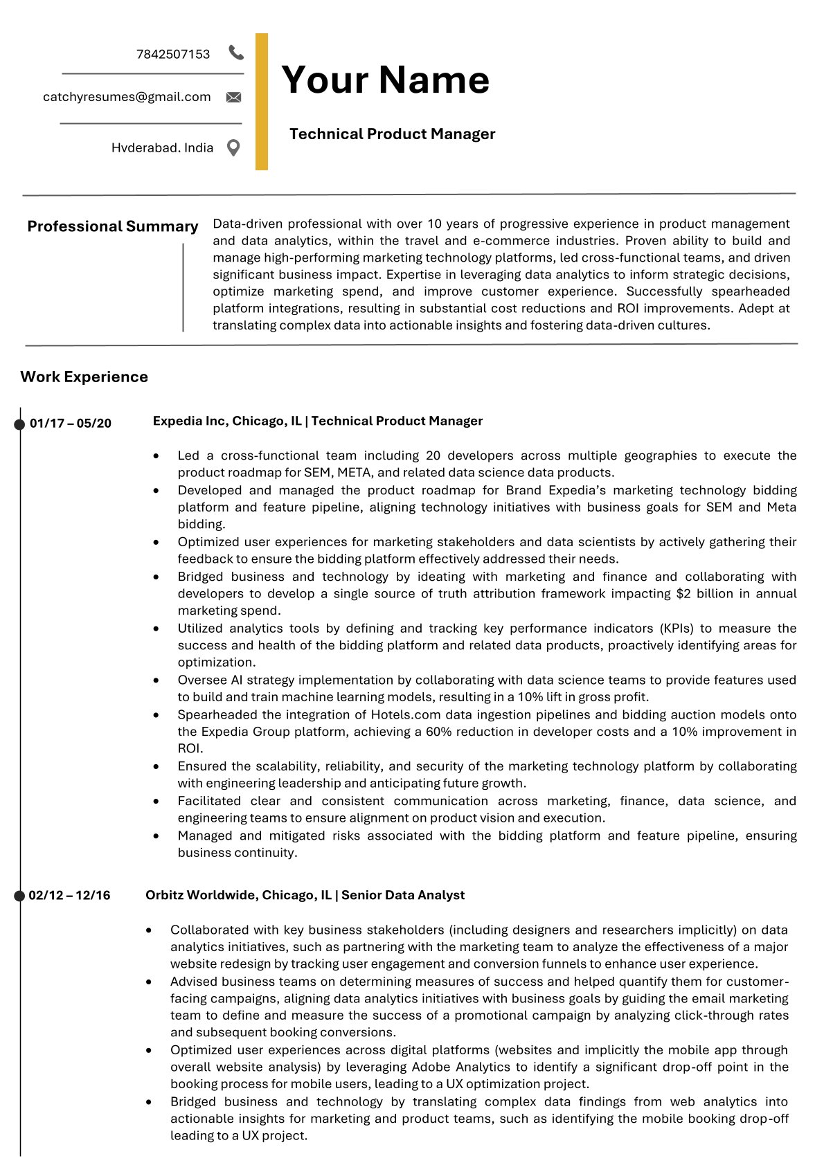 This resume is part of our handpicked collection of professional resume templates, developed to meet recruiter expectations and current hiring trends. Each section comes with thoughtfully written guidance through pre-filled content, including summary, key skills, work experience, and accomplishments, so you never have to start from scratch.