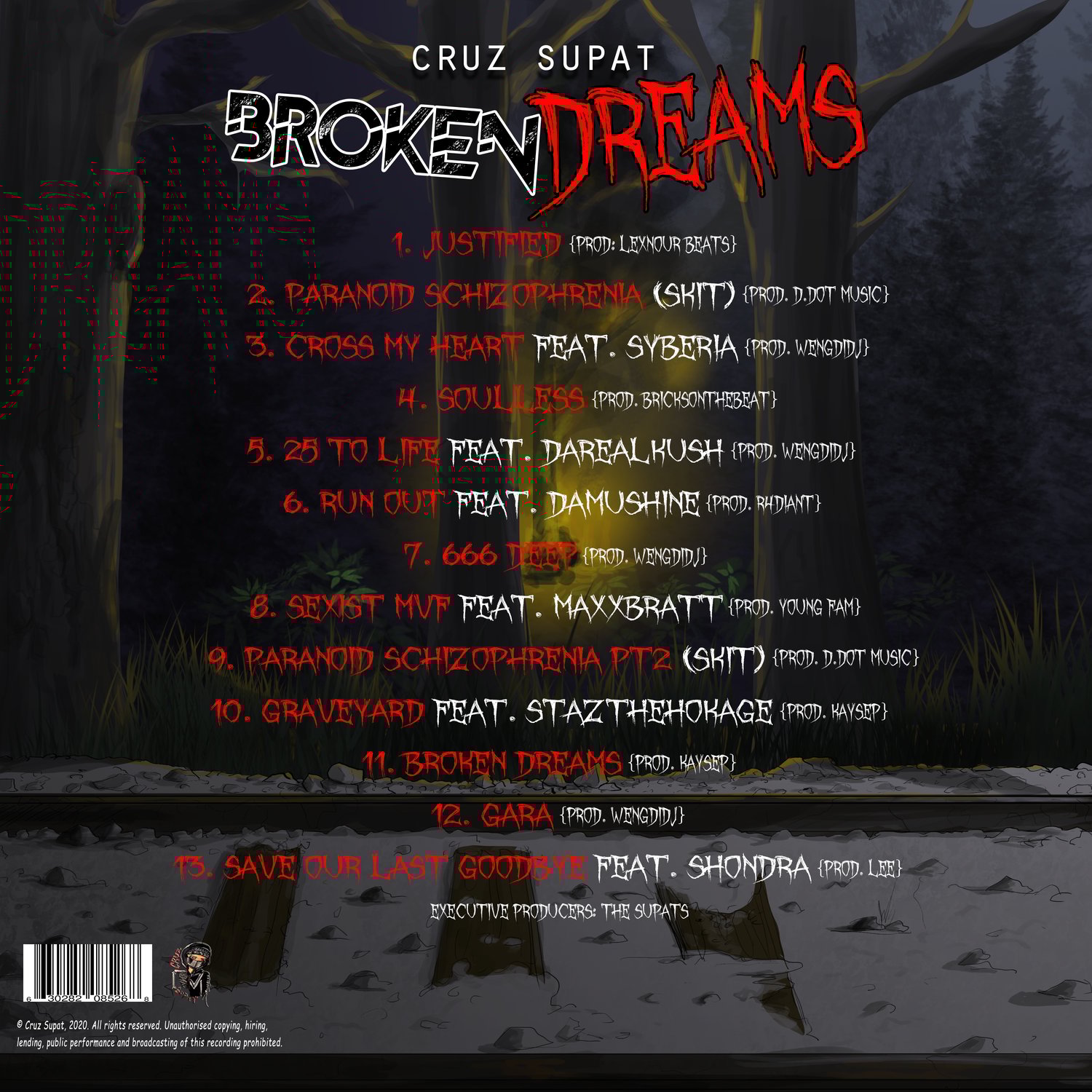 "Broken Dreams LP" is both a cautionary tale and an invitation into Cruz Supat’s layered psyche—at times painfully honest, at others defiantly resistant. It’s a visceral journey through the highs of bravado and the lows of introspective horror, capturing the perpetual dance between a survivor’s mindset and a society that constantly watches.