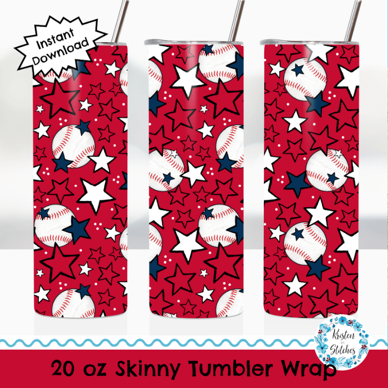 Skinny Tumbler Wrap, 20 oz, Printable Sublimation, Baseball, Boston Red Sox Red Navy Blue