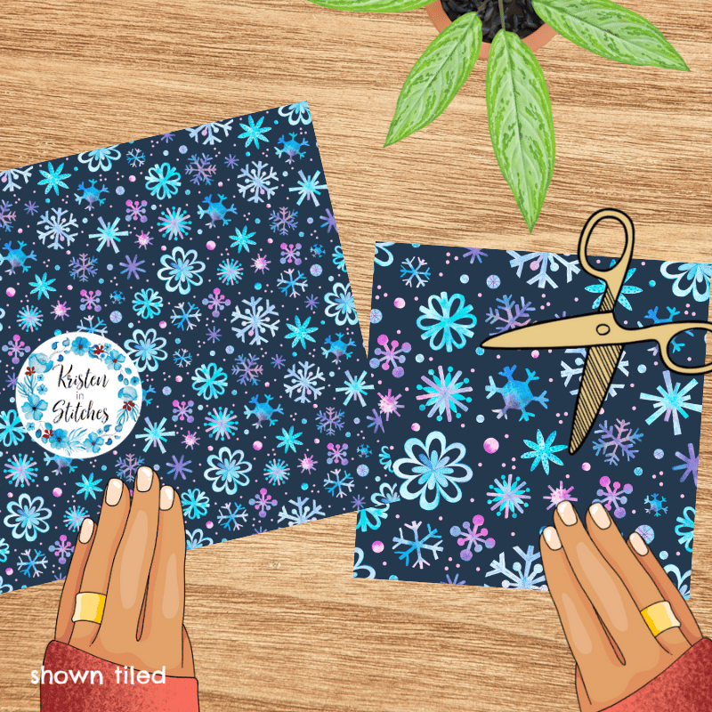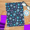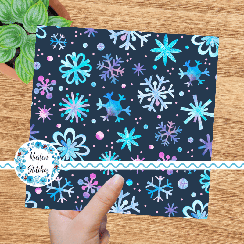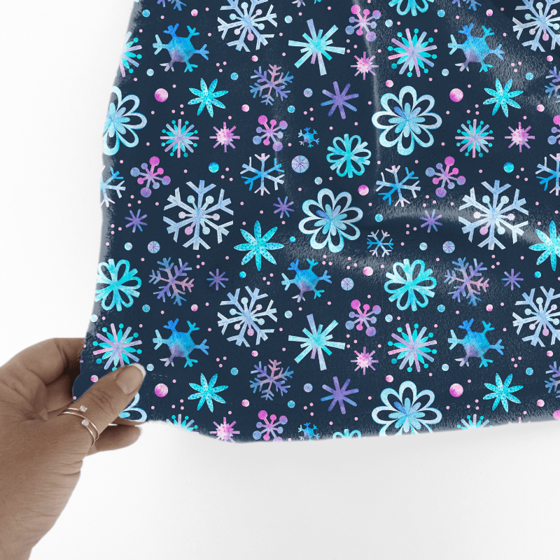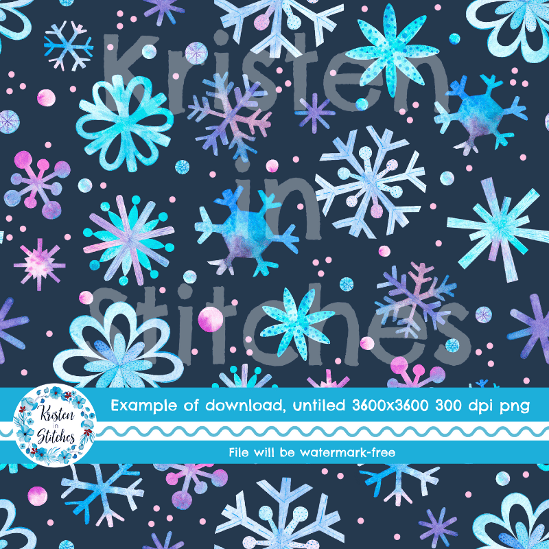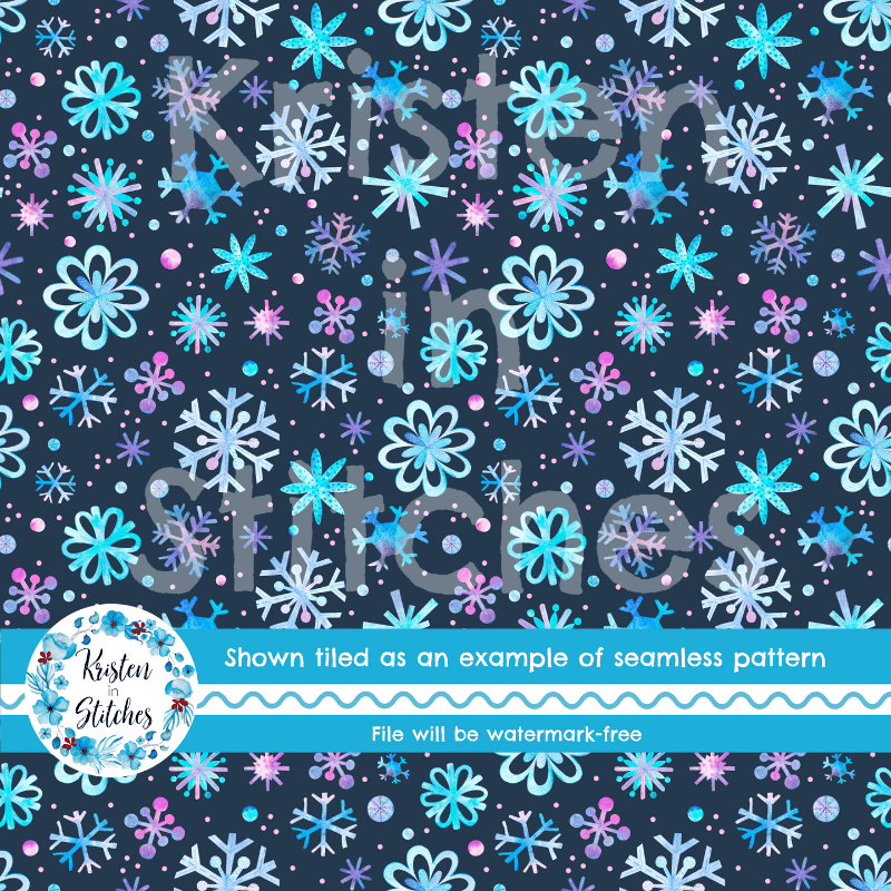 Pretty blue and purple watercolor snowflakes on navy.