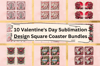 10 Valentine's Day Sublimation Square Coaster Bundles - High-Quality 300 DPI Digital Download