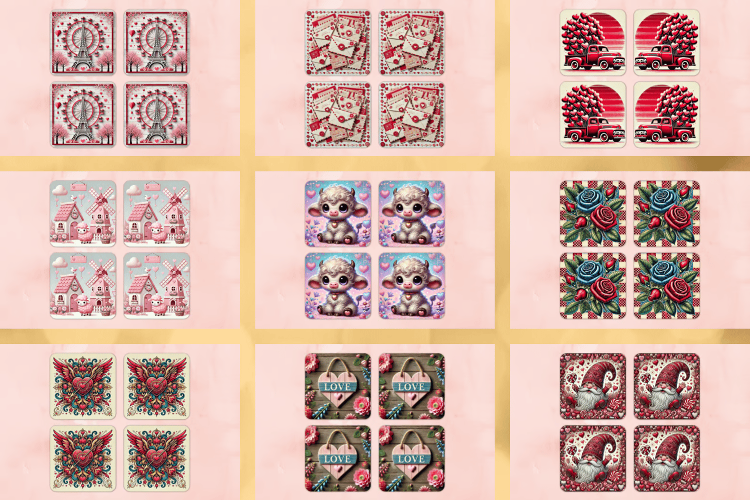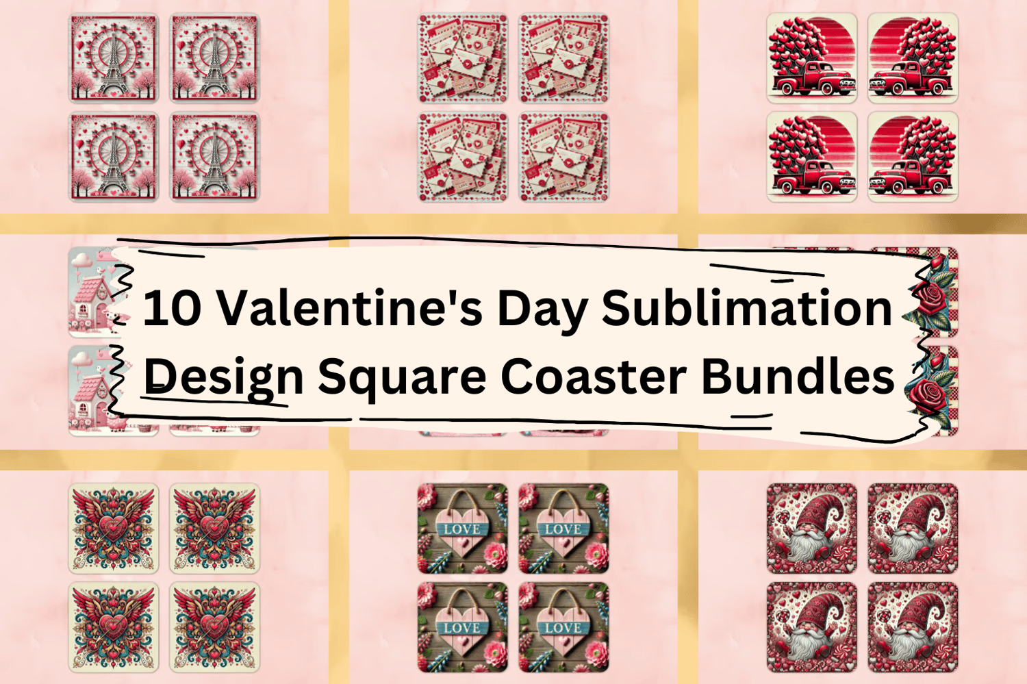 Sublimation Design: 10 Valentine's Day Square Coaster Bundles - High-Quality 300 DPI Digital Download