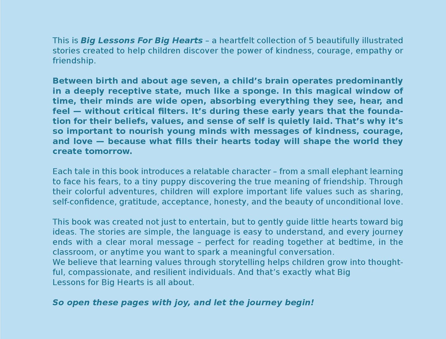“Big Lessons for Big Hearts” is a premium digital storybook designed to help young children learn essential values in a fun and gentle way.