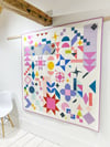 It is a modern sampler quilt featuring loads of the blocks you know and love (HSTs, Flying Geese, Curves etc) in a bold modern setting.