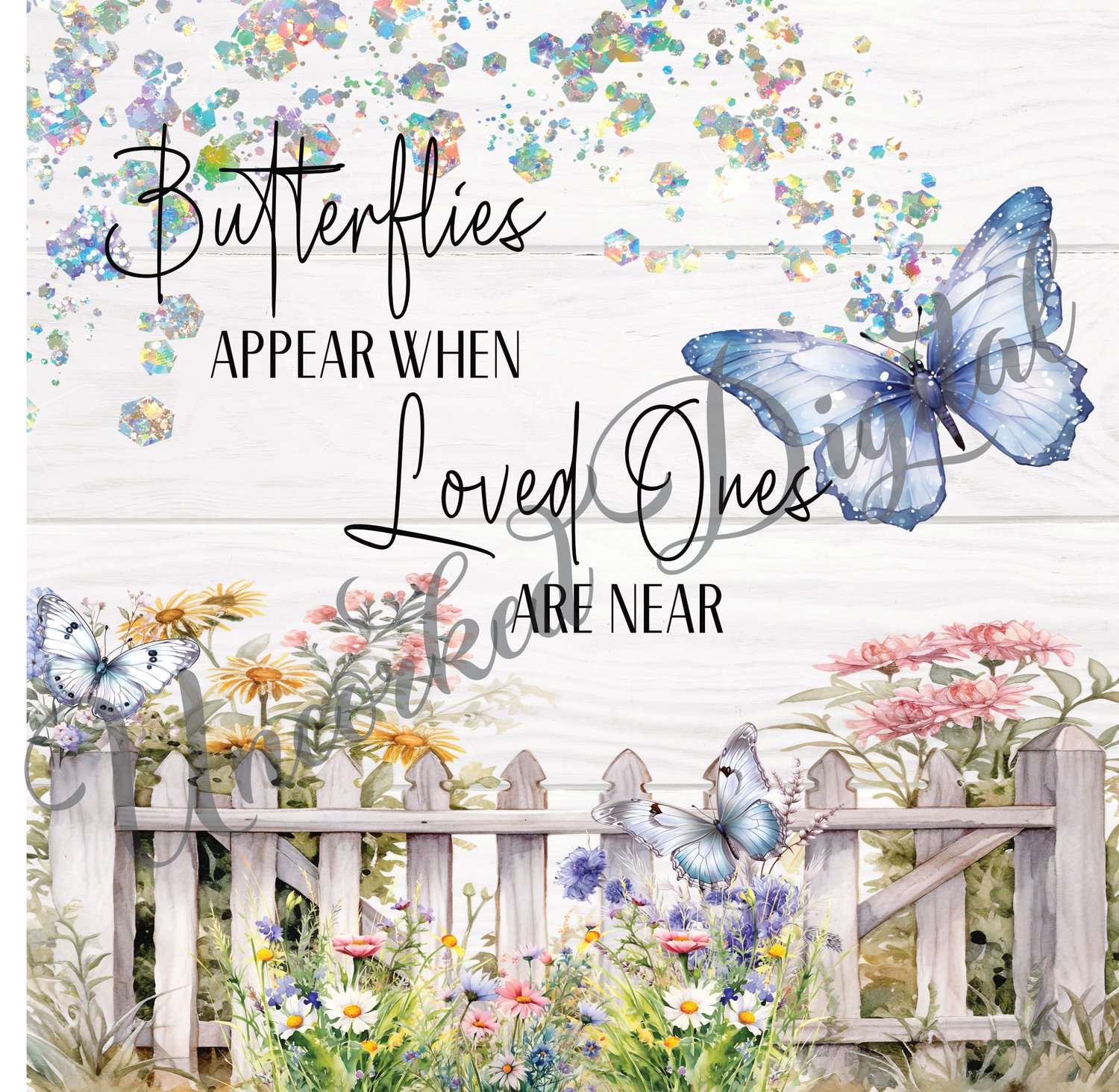 Circular and square "butterflies appear" resizable designs, perfect for various end products.