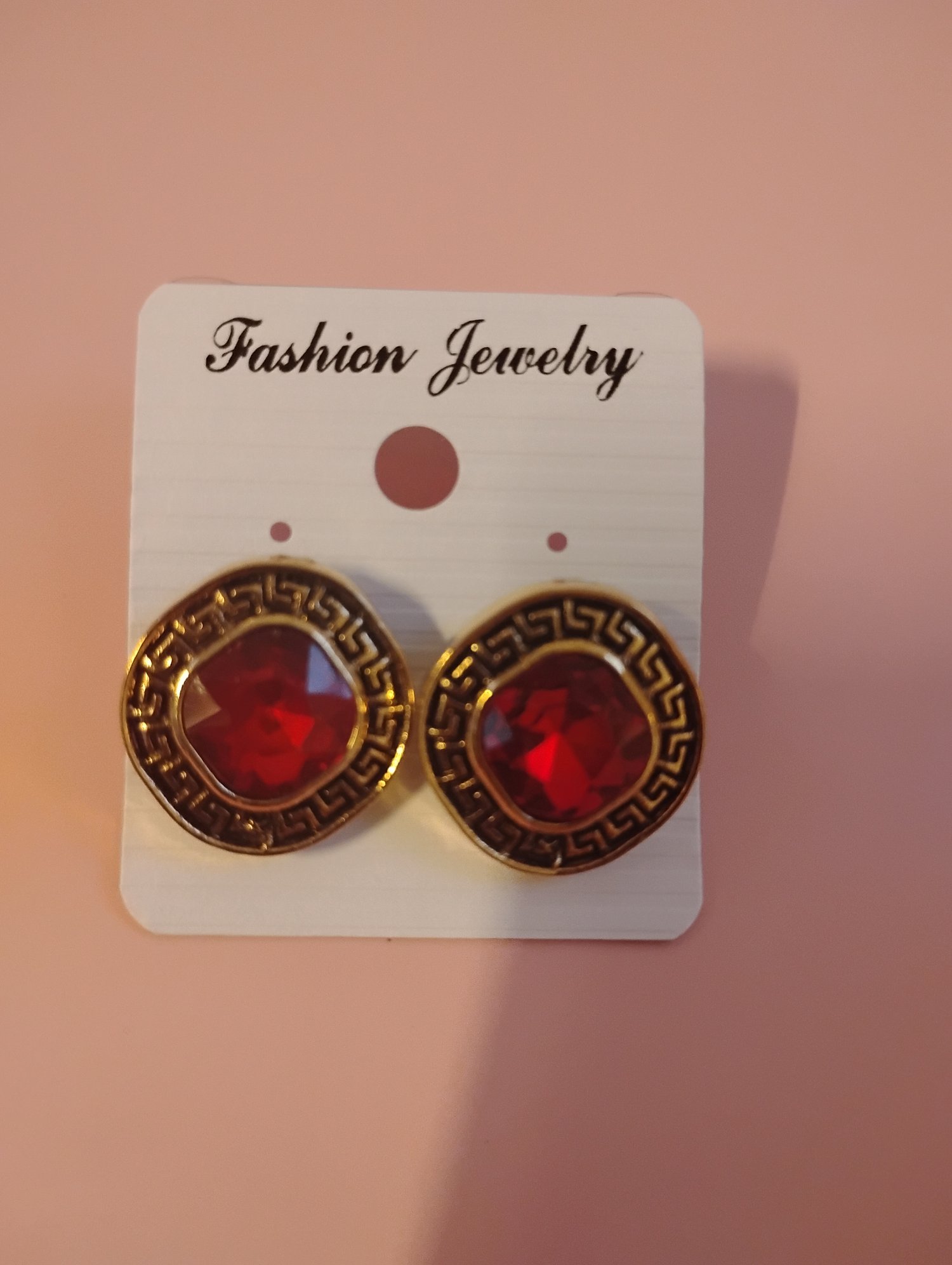 Ruby Gem and Gold Detail Earrings with detail, these earrings are stylish and are the perfect accompanitment.