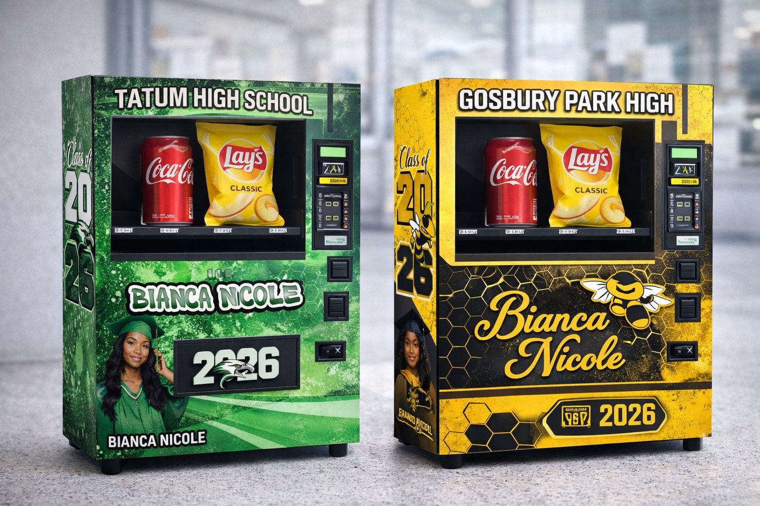 Create a custom vending machine display that stands out and matches your graduate perfectly!