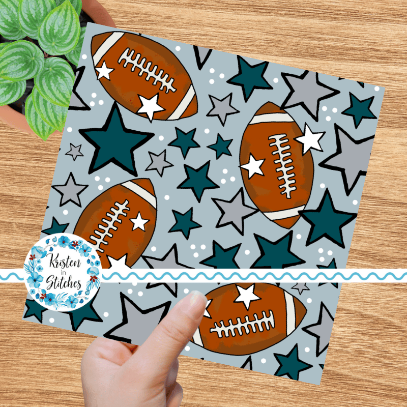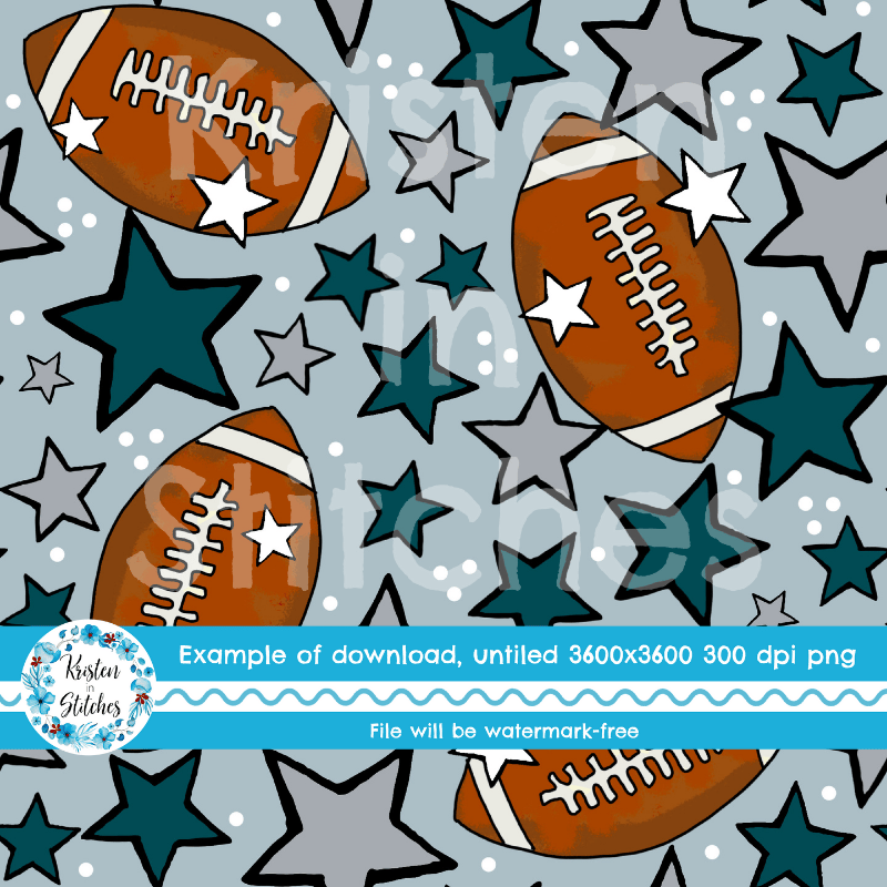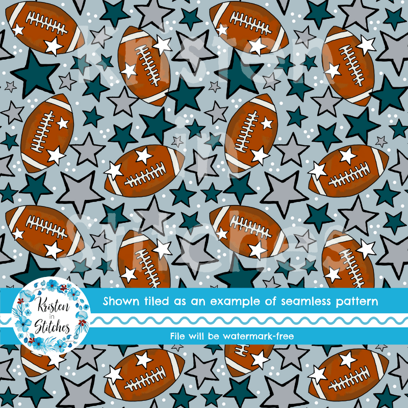 Footballs and stars in Philadelphia Eagles Colors Midnight Green and silver grey.