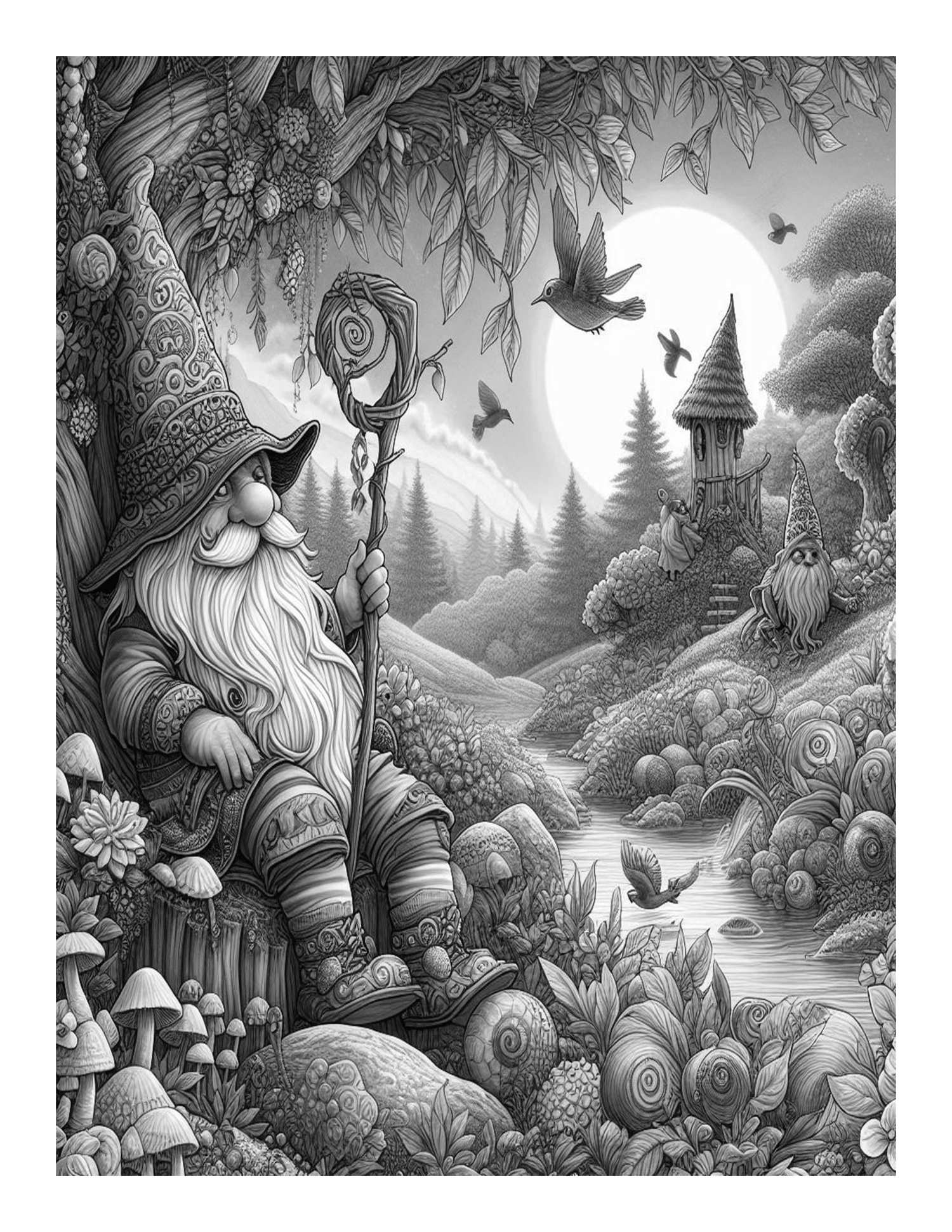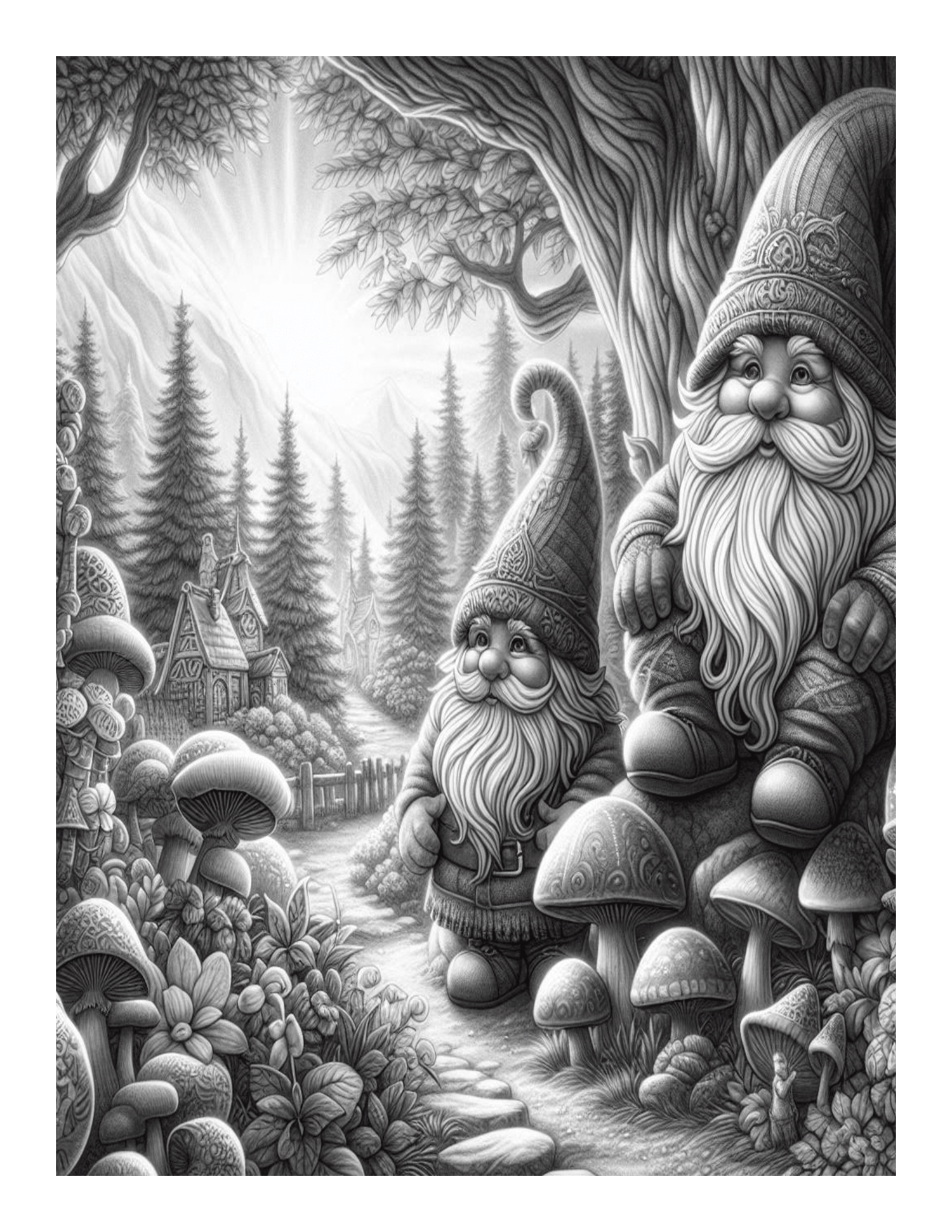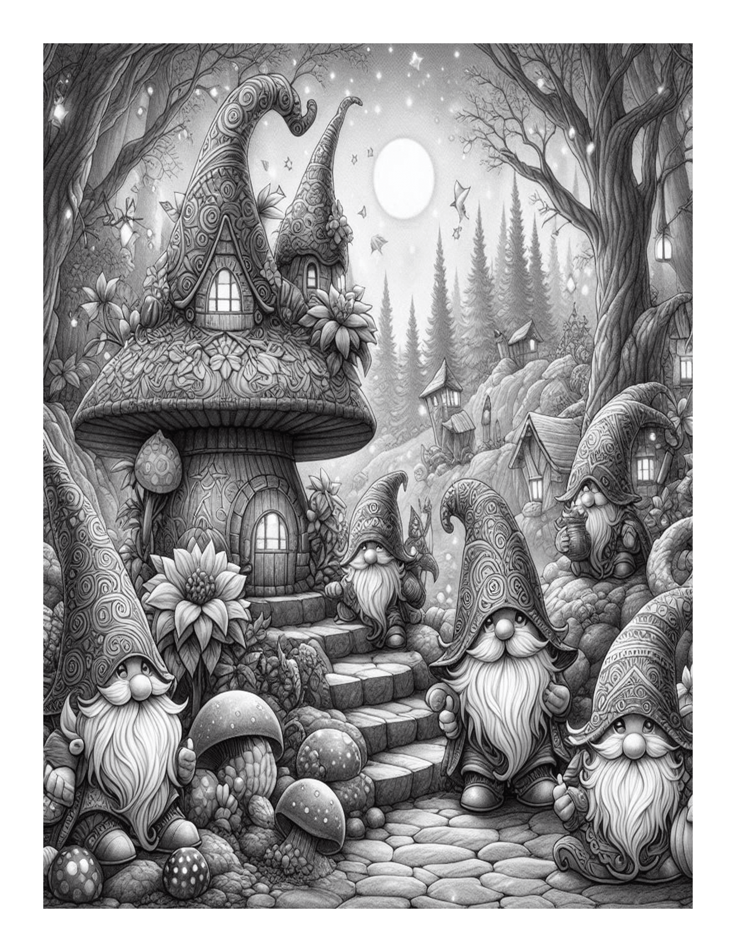 Beautiful Magical wonderland gnomes for Adults to enjoy Coloring for Stress Relief