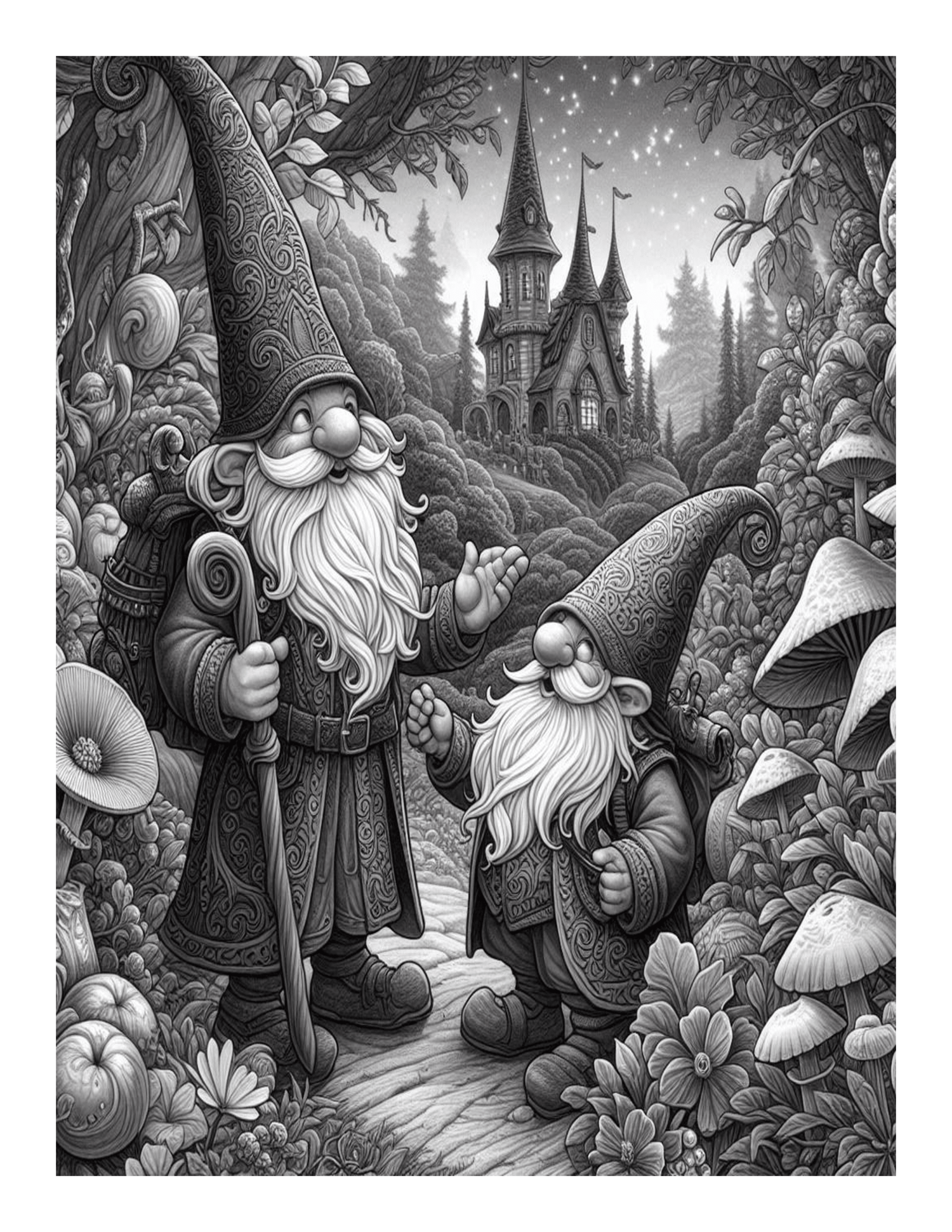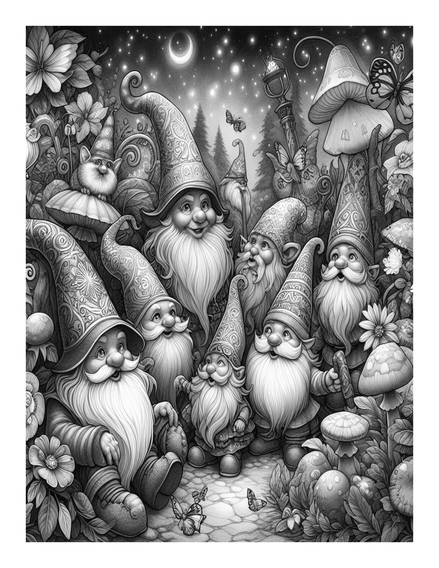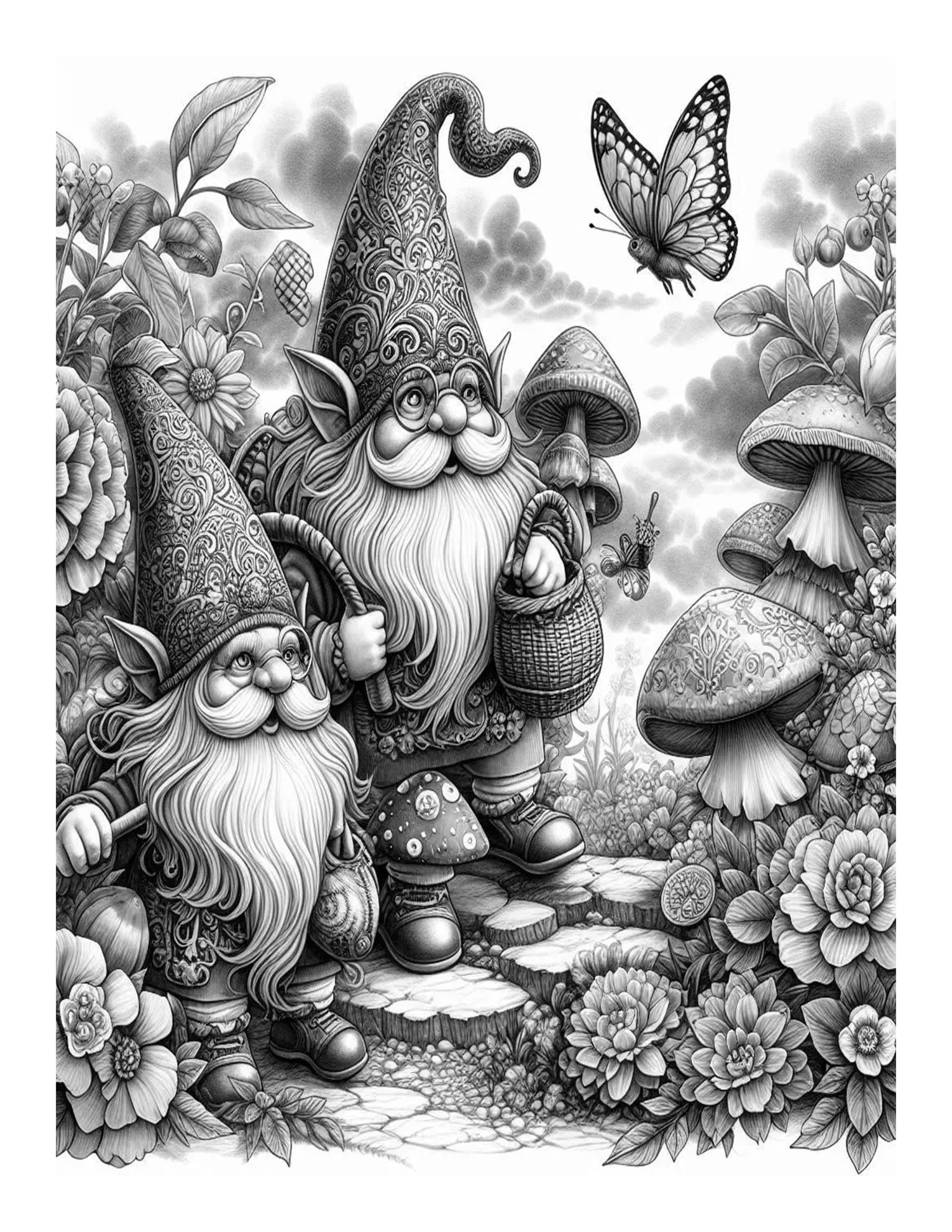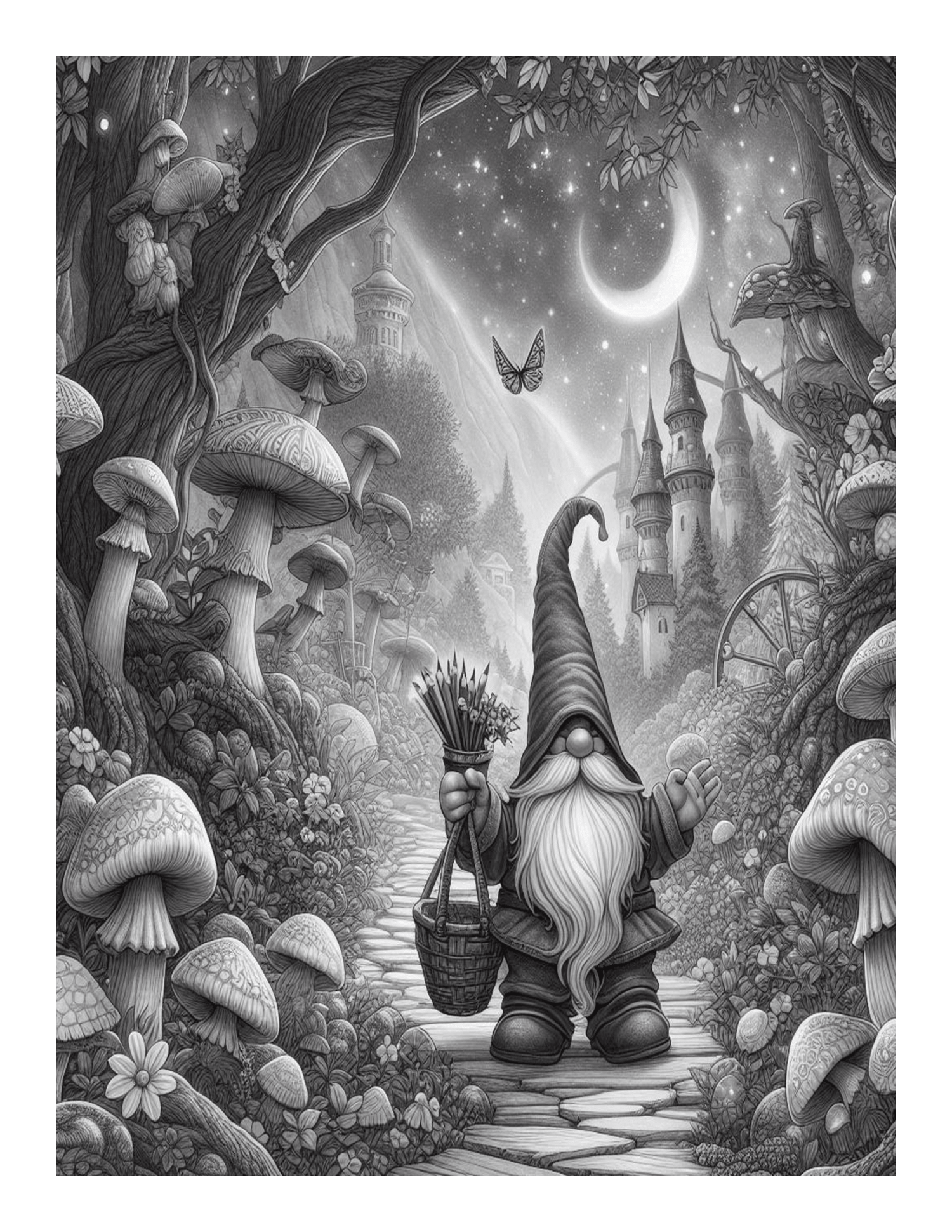 Beautiful Magical wonderland gnomes for Adults to enjoy Coloring for Stress Relief