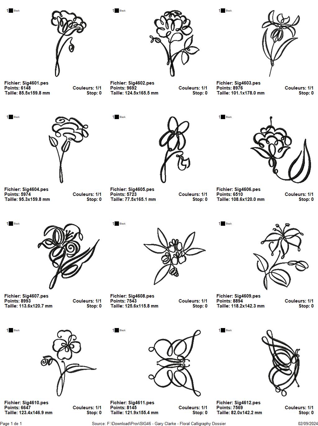 The designs in this pack come in a range of sizes, all of which are clearly indicated in the pictures in millimeters. This means that you can easily choose the right size for your project, whether you're embroidering a small logo or a larger image.