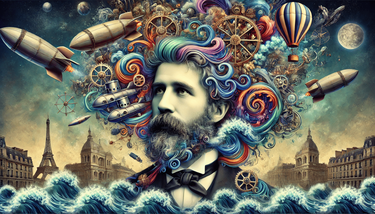 Surreal Caricature of Jules Verne – A Visionary Voyage into Imagination