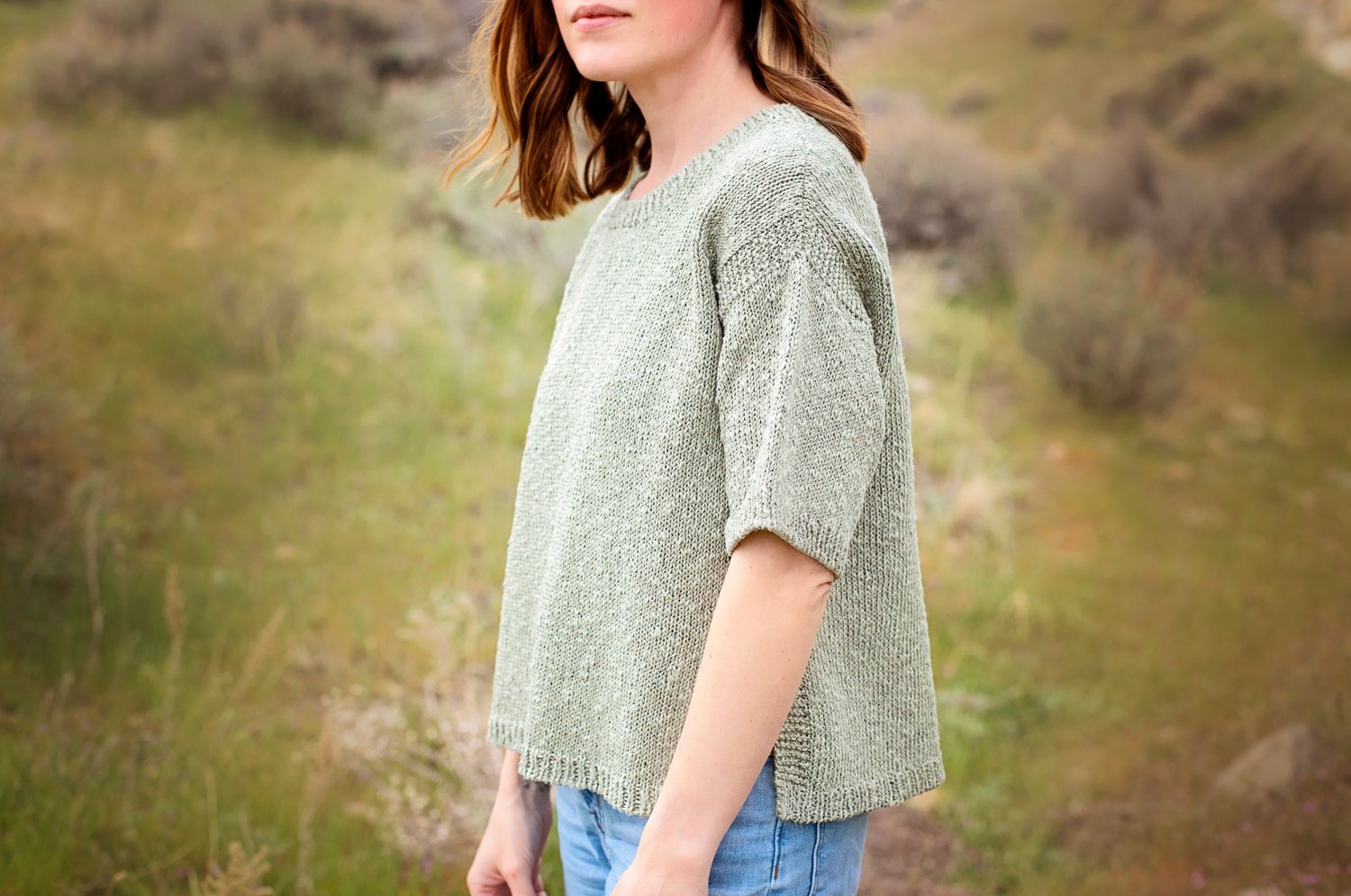 Clary is a fresh take on a classic tee and will quickly become your favorite summer pullover. This warm weather essential features subtle garter edging which emboldens the earthy texture of Berroco Meraki.