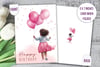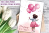 Looking for a cute heartfelt birthday card for a little girl? I got you covered. :) Pastel pink colors design and playful illustration of a little girl holding the balloons make this card cute and perfect gift for a little princess. Make her feel special on her special occasion day!