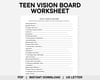 Teen Vision Board Worksheet, New Years Resolutions, Dream Board, Goal Setting, Manifestation, Future Self, Growth Mindset, Self Discovery