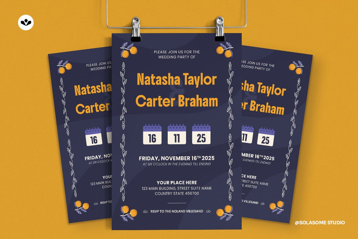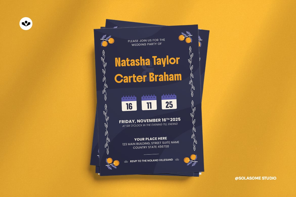 This is an invitation design template - also be used for design various project design invitation. It's perfect for couple seeking sophisticated invitation solutions. This design will make your special day unforgettable and memorable event.