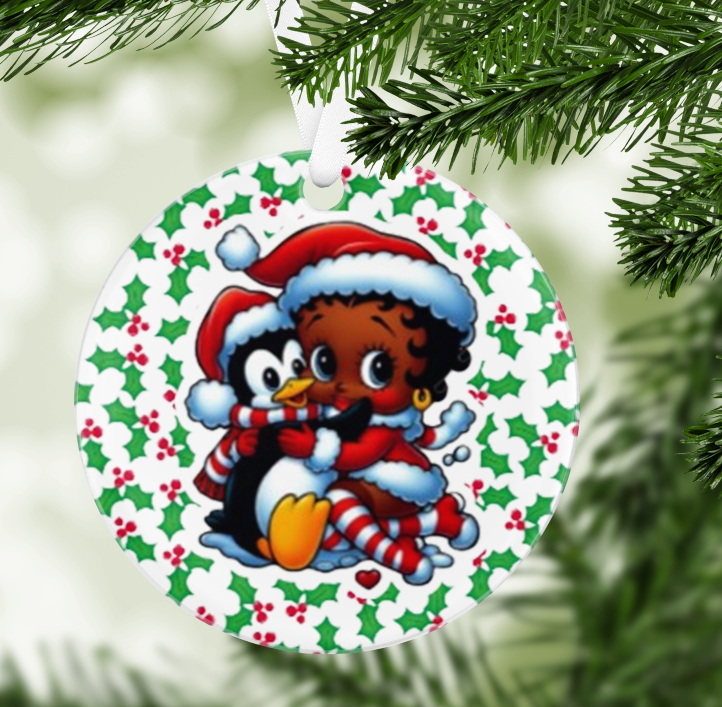 African American Betty Boop and Penguin Christmas Tree ornament