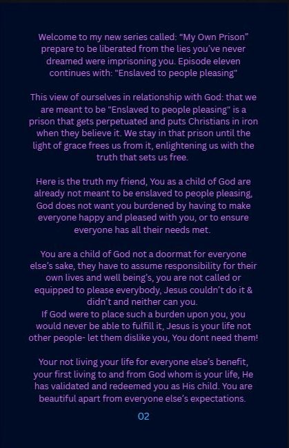 Author Timothy Virge's Devotional series: My Own Prison Episode Twelve: "Enslaved to people pleasing"