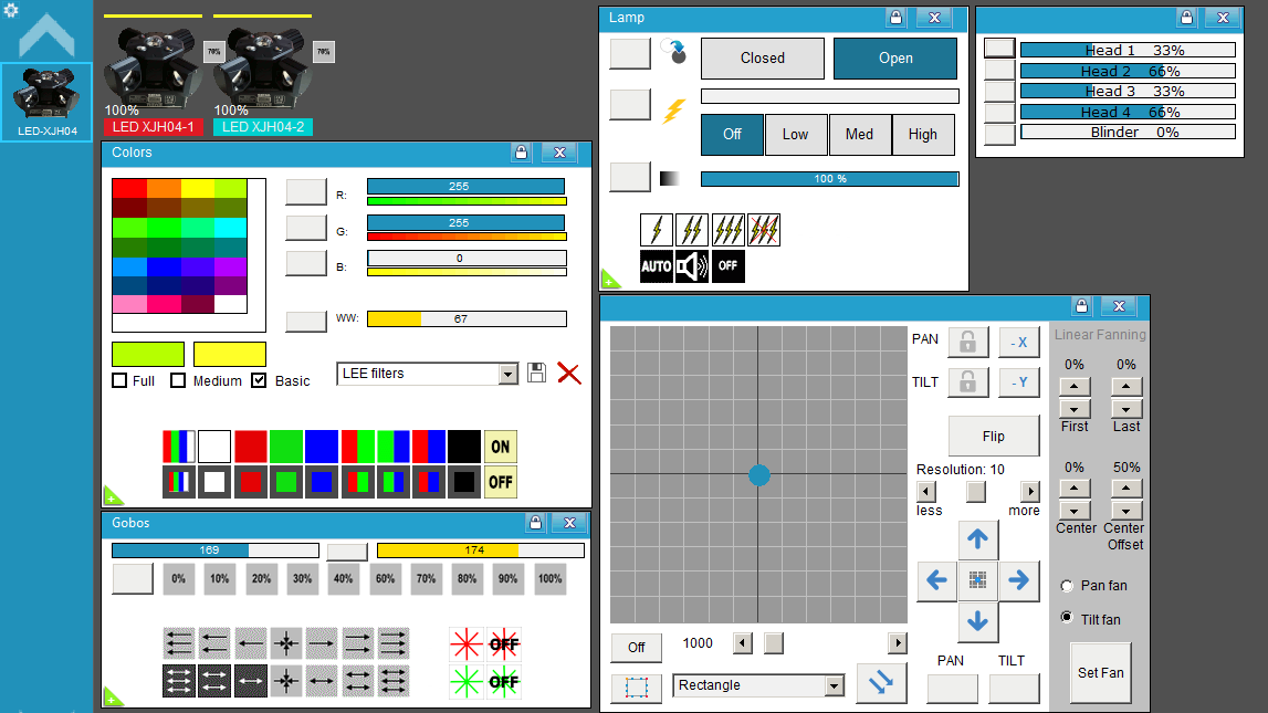 • Control individual de Tilt de cada una de las 4 Cabezas.