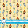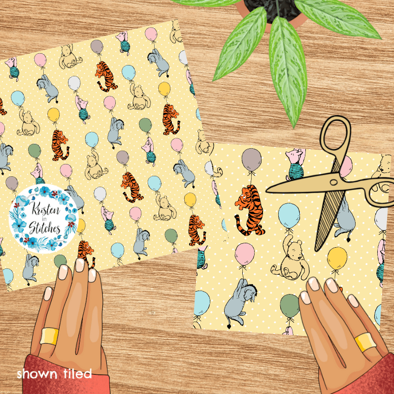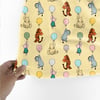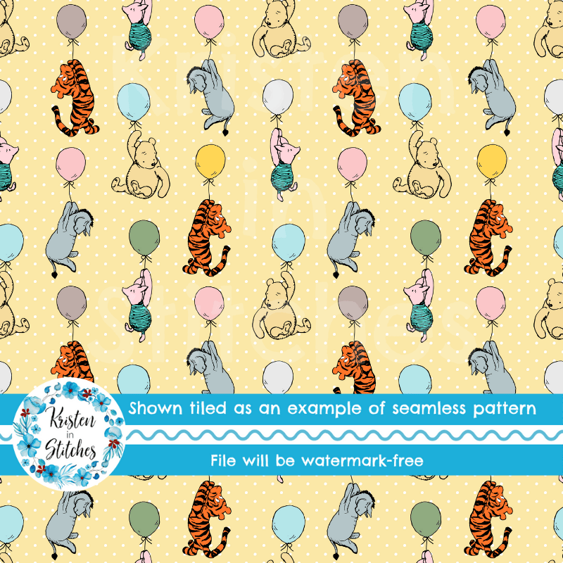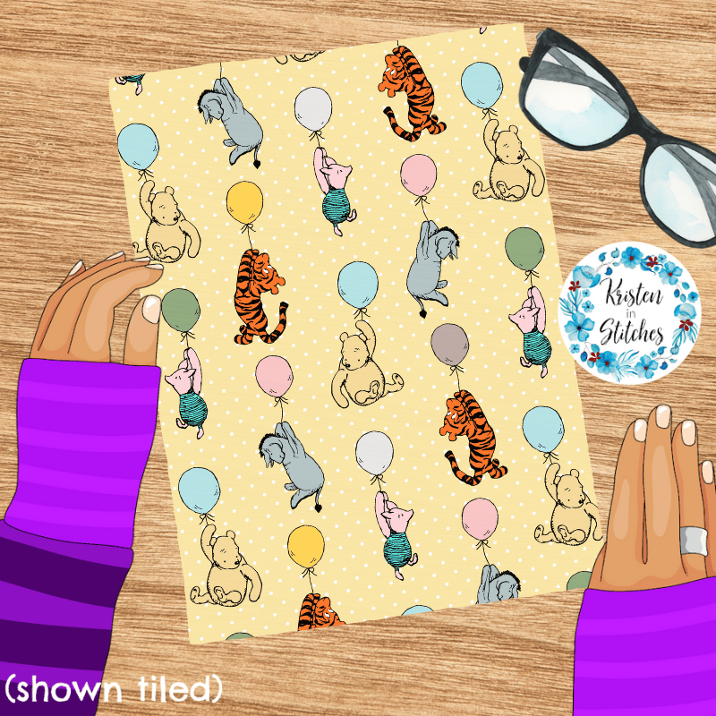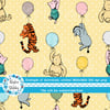 Classic Winnie the Pooh and Friends Floating Balloons Nursery Seamless Pattern, Soft Golden Yellow