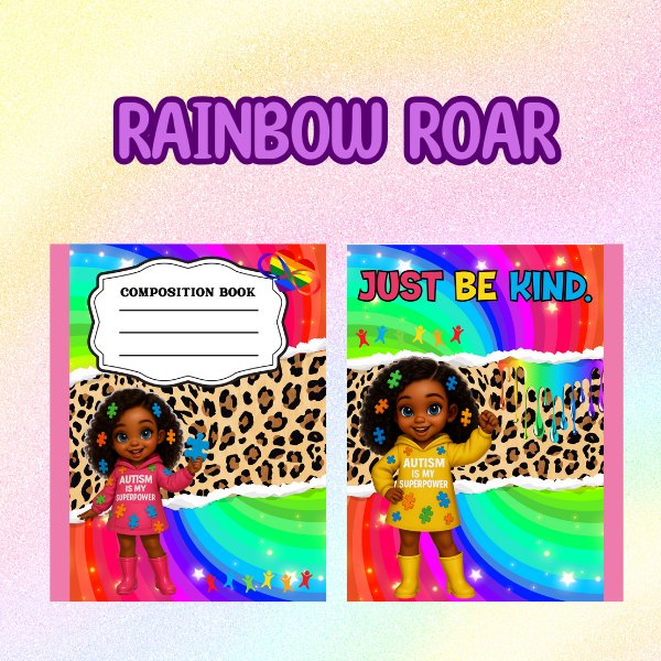 Let your creativity roar with our Rainbow Roar Composition Notebook Template – a bold and colorful design from our Autism Collection, created to celebrate strength, individuality, and pride!