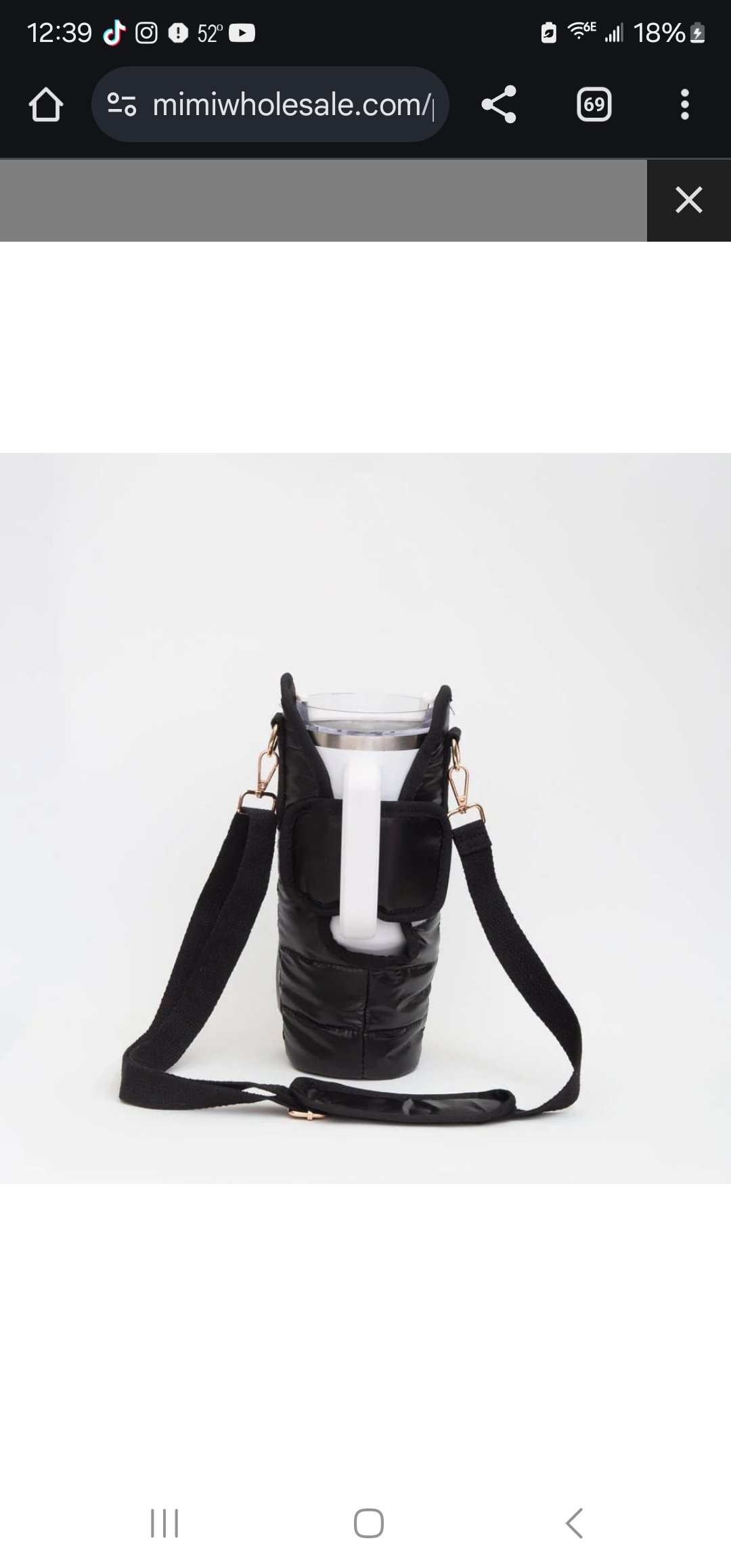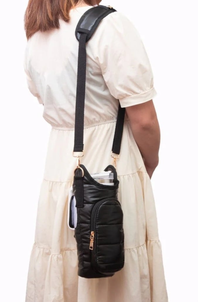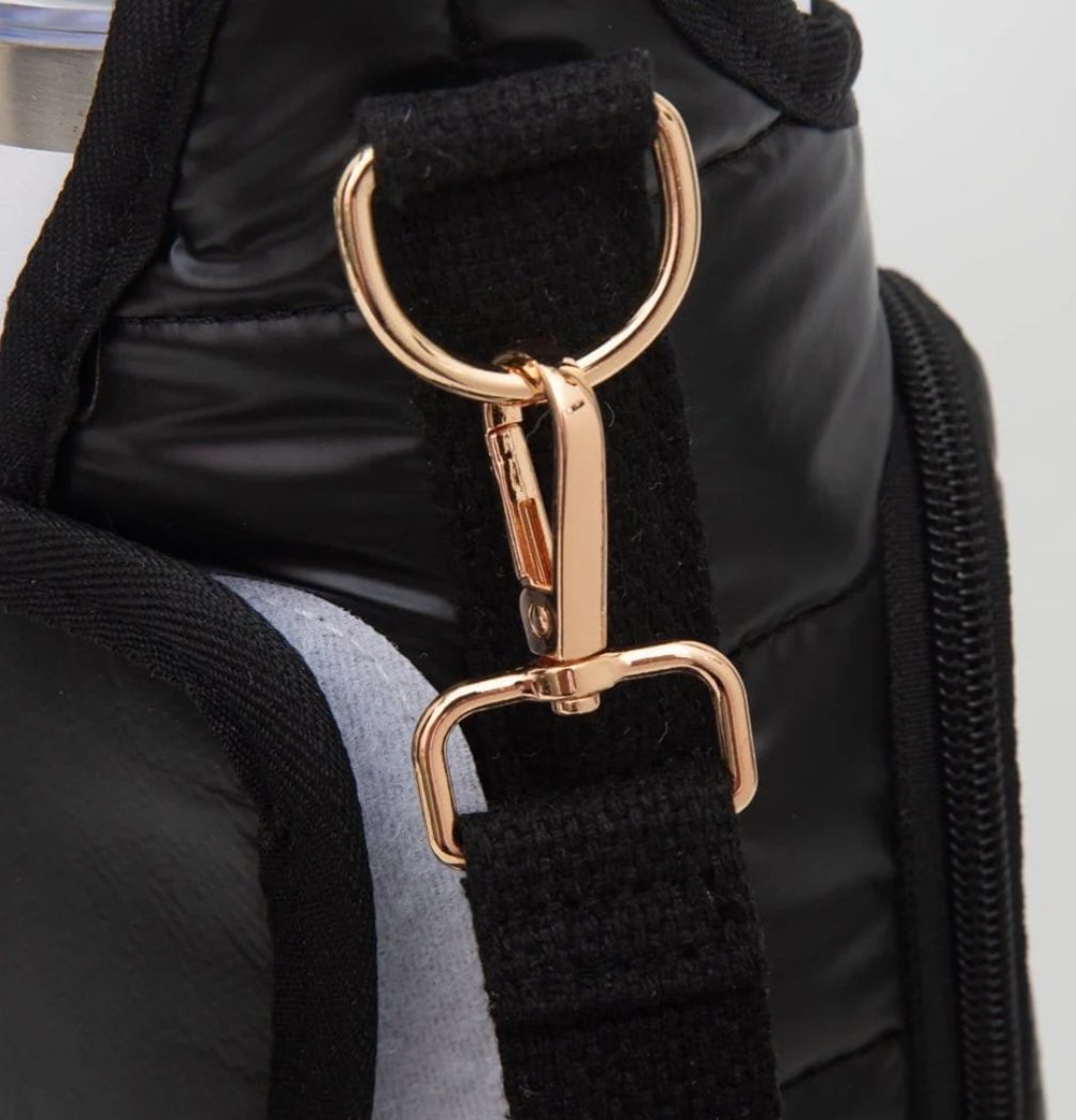 Black Puffer Tumbler Holder Crossbody Bag